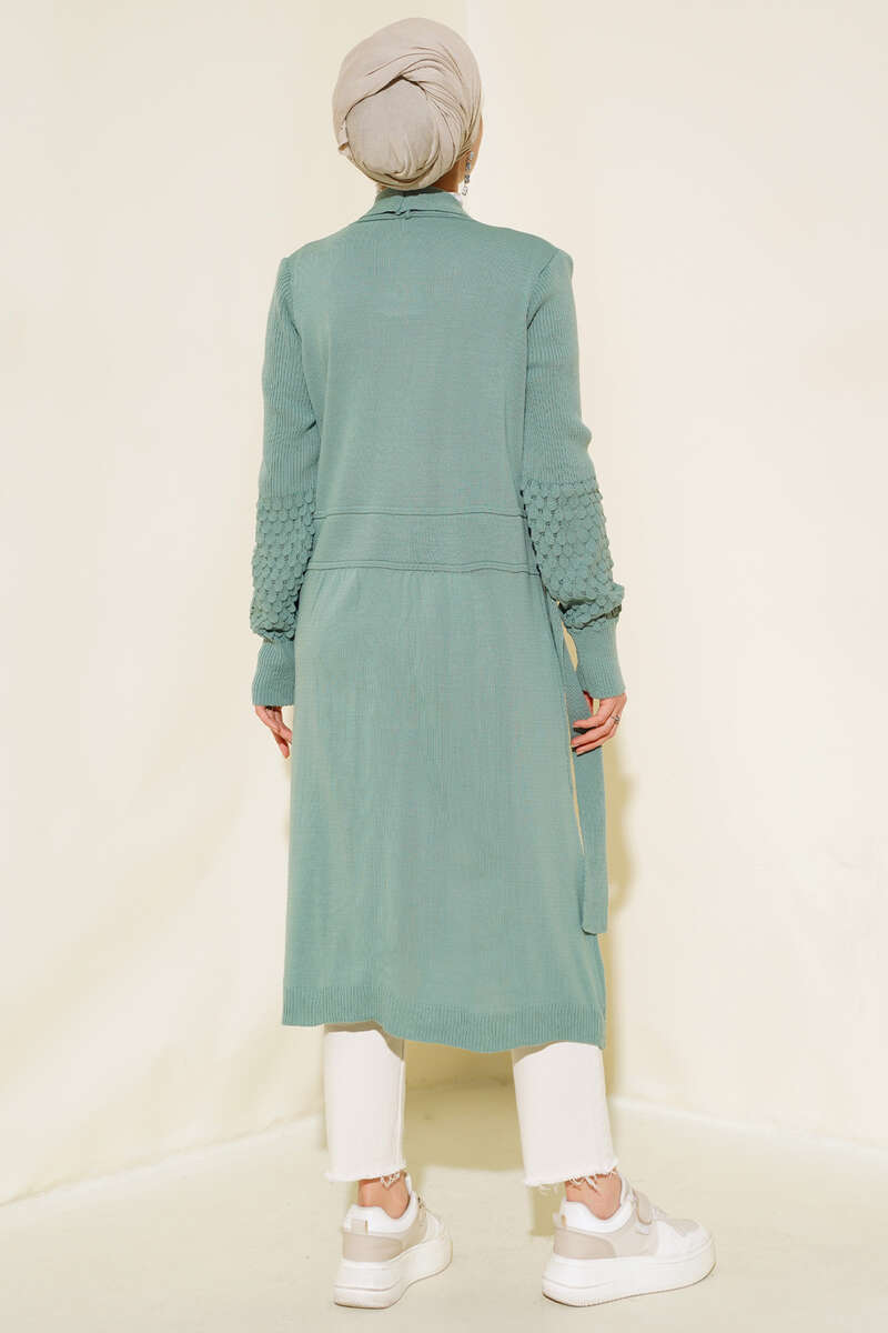 Üzüm Kol Bağcıklı Uzun Hırka Çağla Yeşili