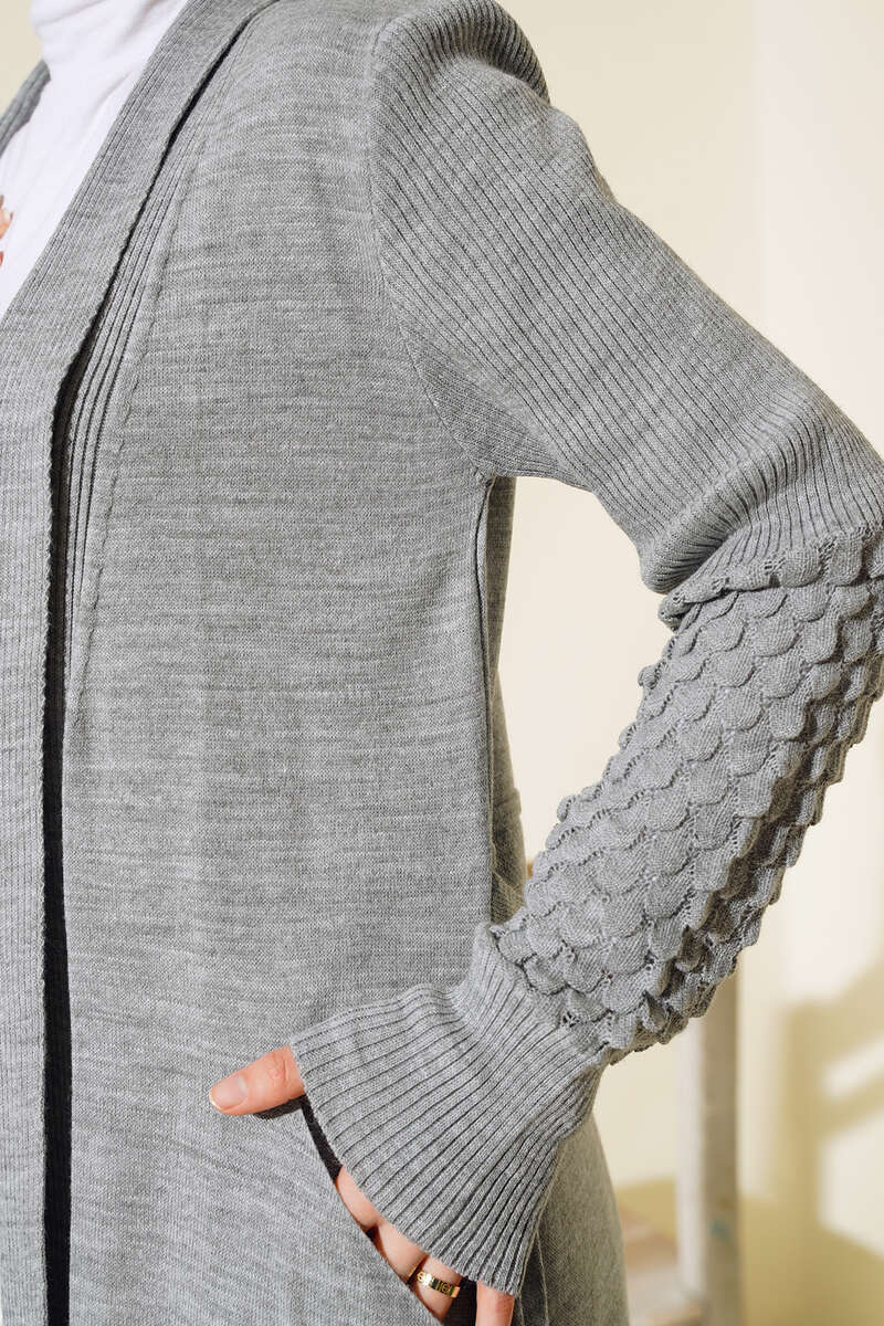 Yeni sezon hırka modelimiz sizlerle beraber. Hırkamız üzüm kol modeldir. Kendine dikişli kuşağı vardır. İki adet cebi vardır. Uzun modeldi. Hırkamız hem şık hem sportif kombinlerinize uyum sağlayacaktır. Renk seçenekleri mevcuttur.