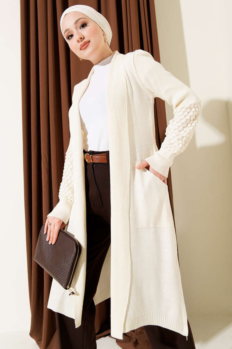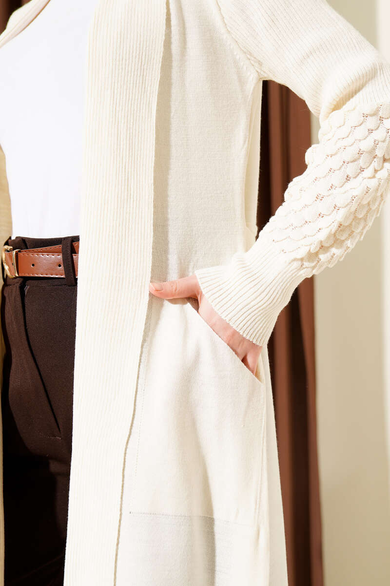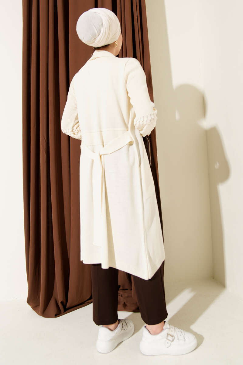 Üzüm Kol Bağcıklı Uzun Hırka Vizon