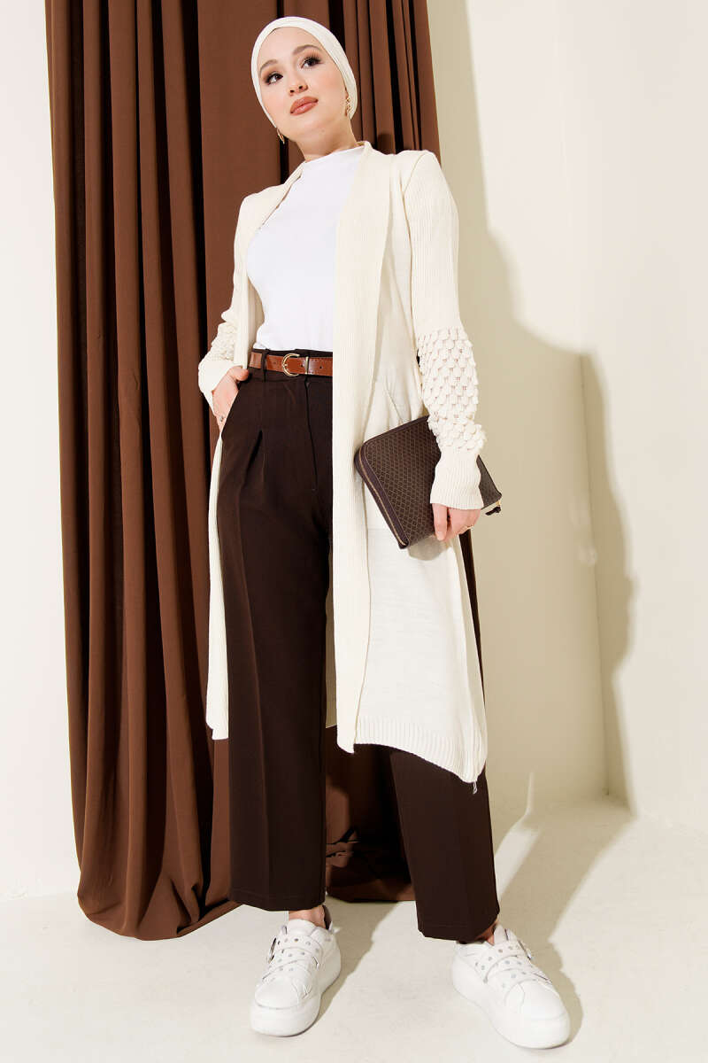 Üzüm Kol Bağcıklı Uzun Hırka Kahve