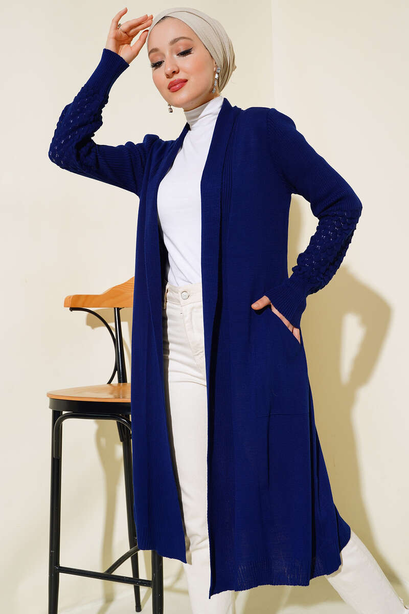 Üzüm Kol Bağcıklı Uzun Hırka Lacivert