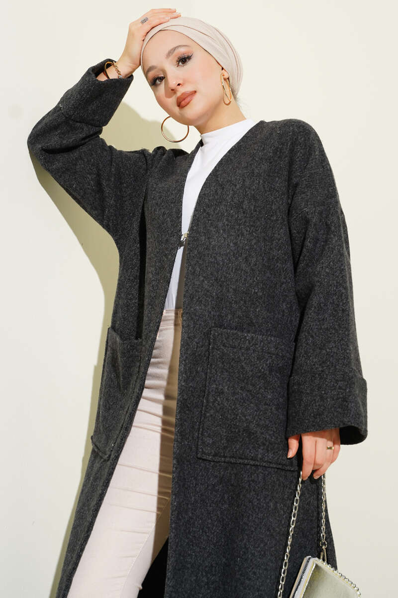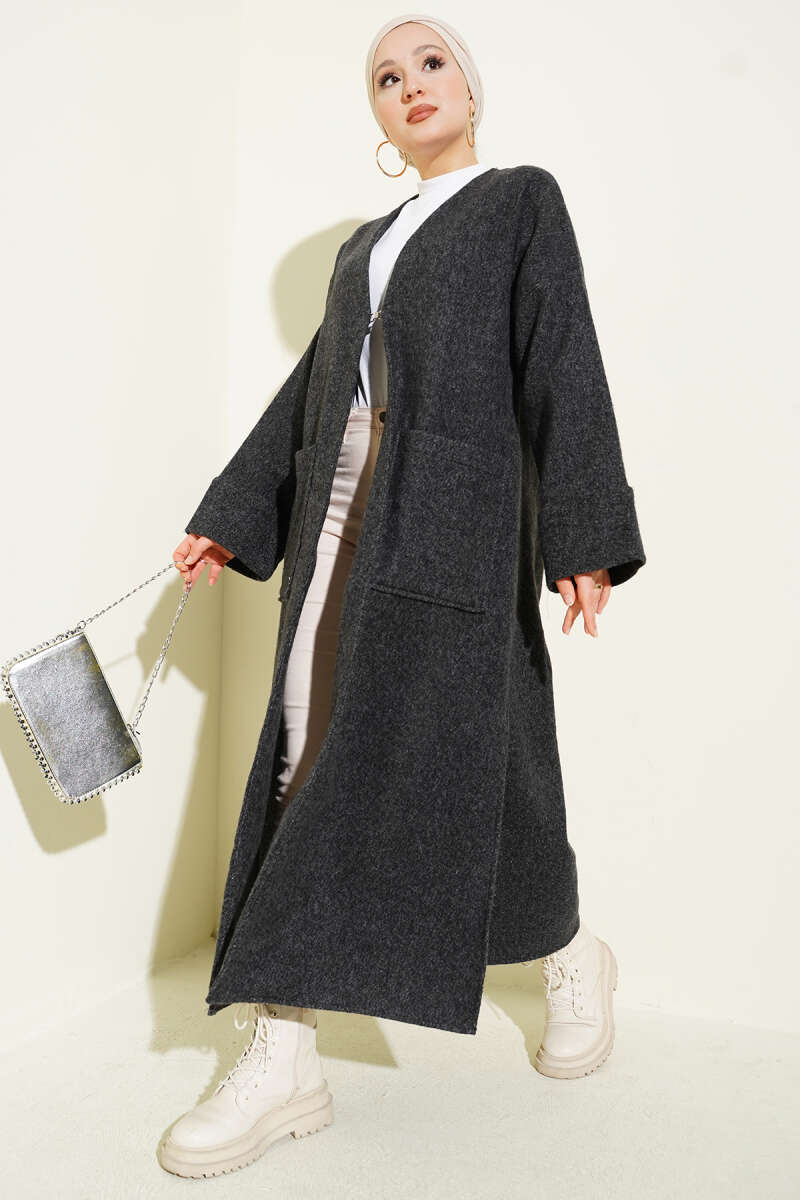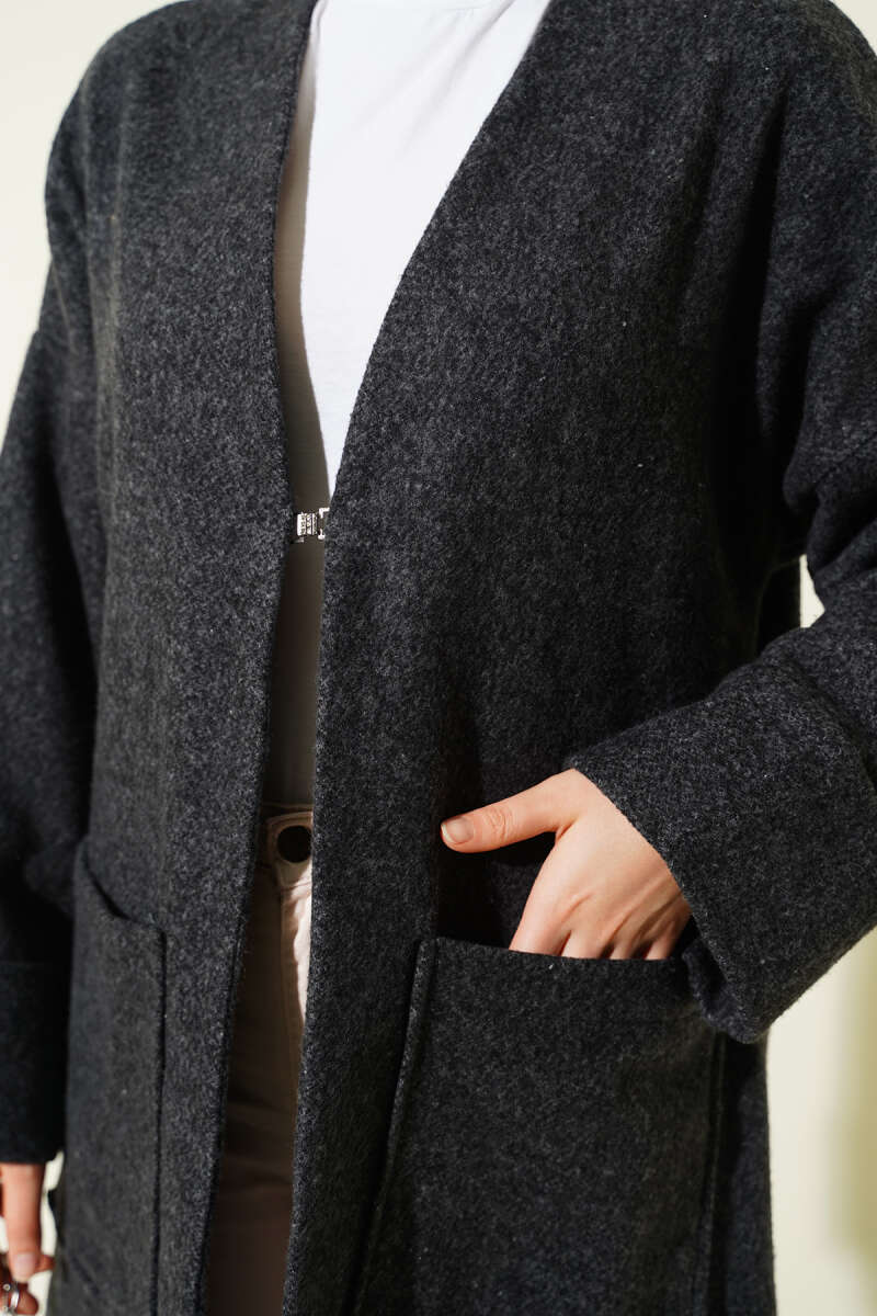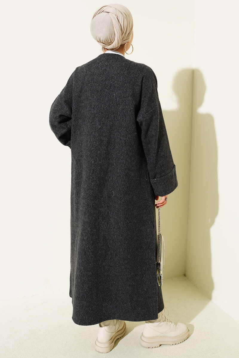 Göğüs Parça Detaylı Kaşe Kaban Füme