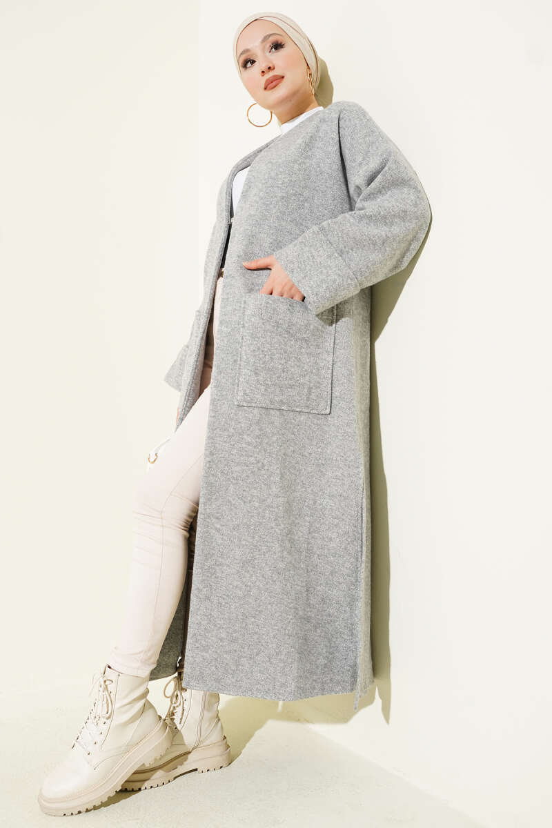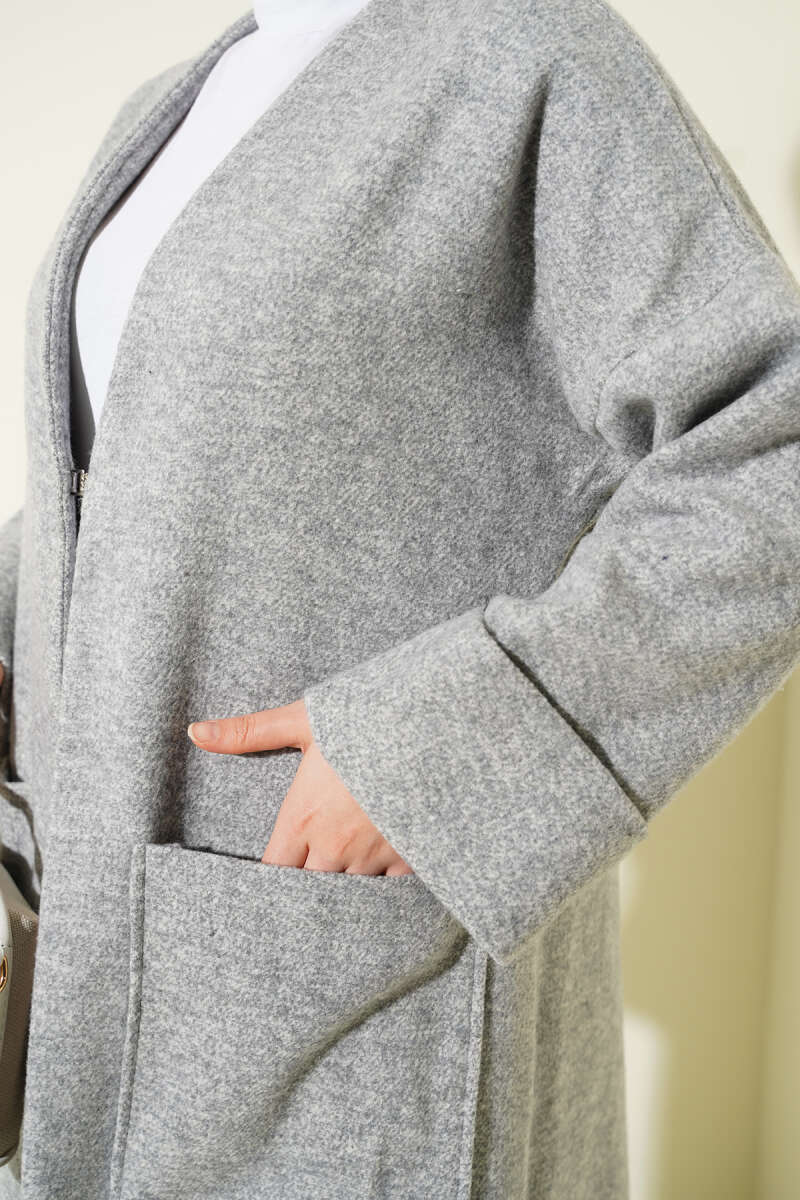 Göğüs Parça Detaylı Kaşe Kaban Füme