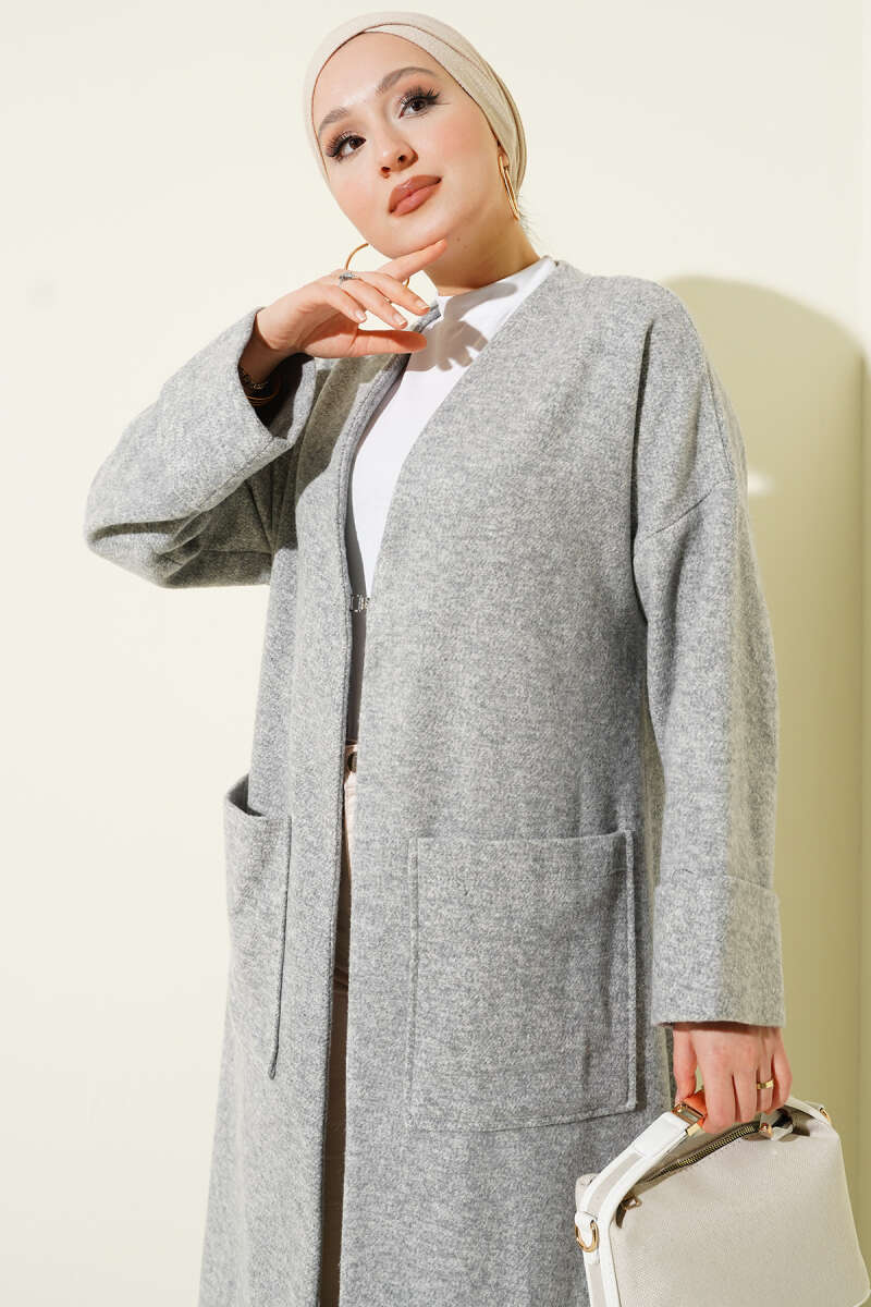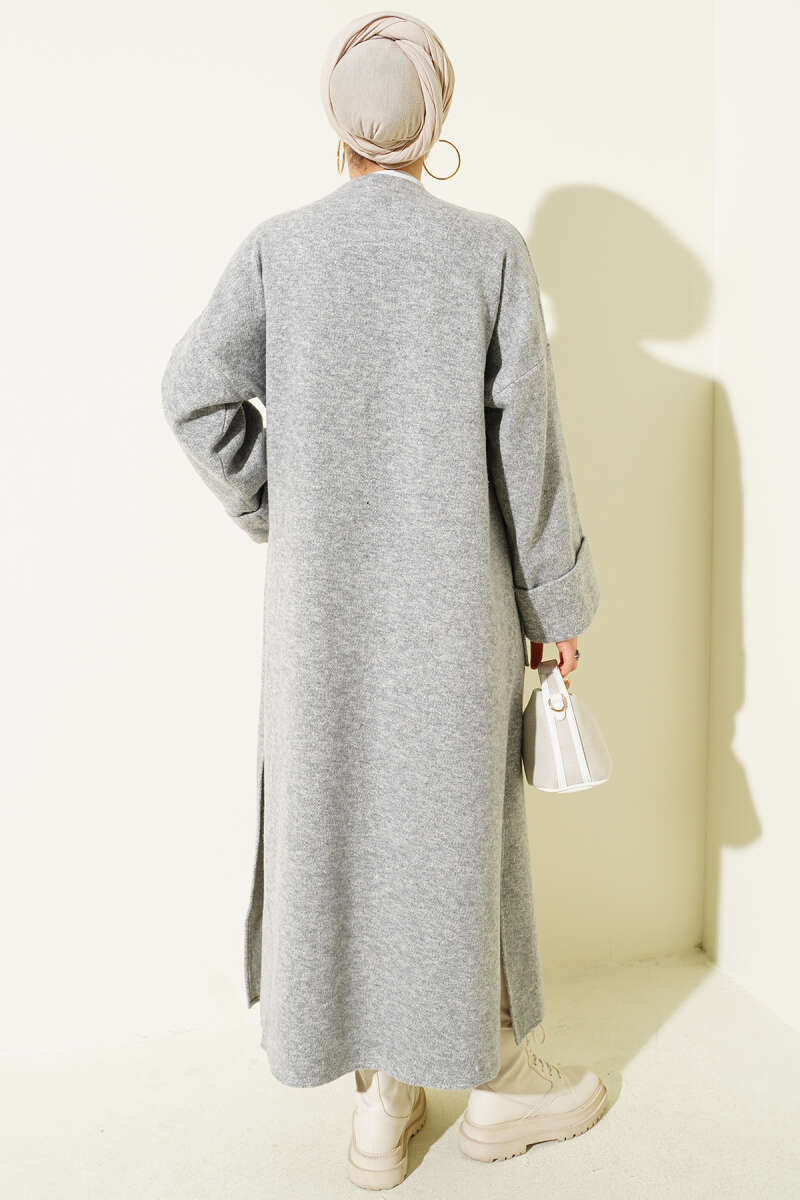 Selanik Örgülü Uzun Triko Hırka Yeşil