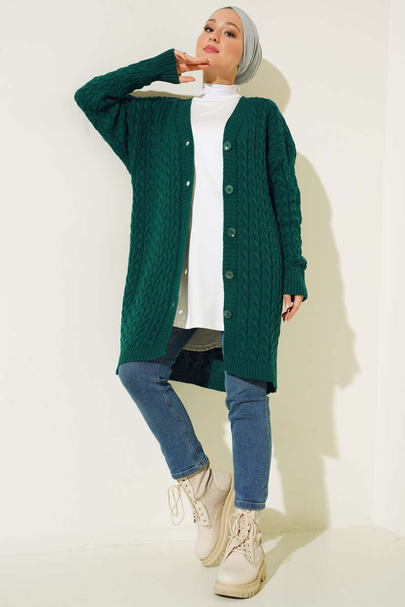 Pirinç Örgü Basic Triko Hırka Nar Çiçeği