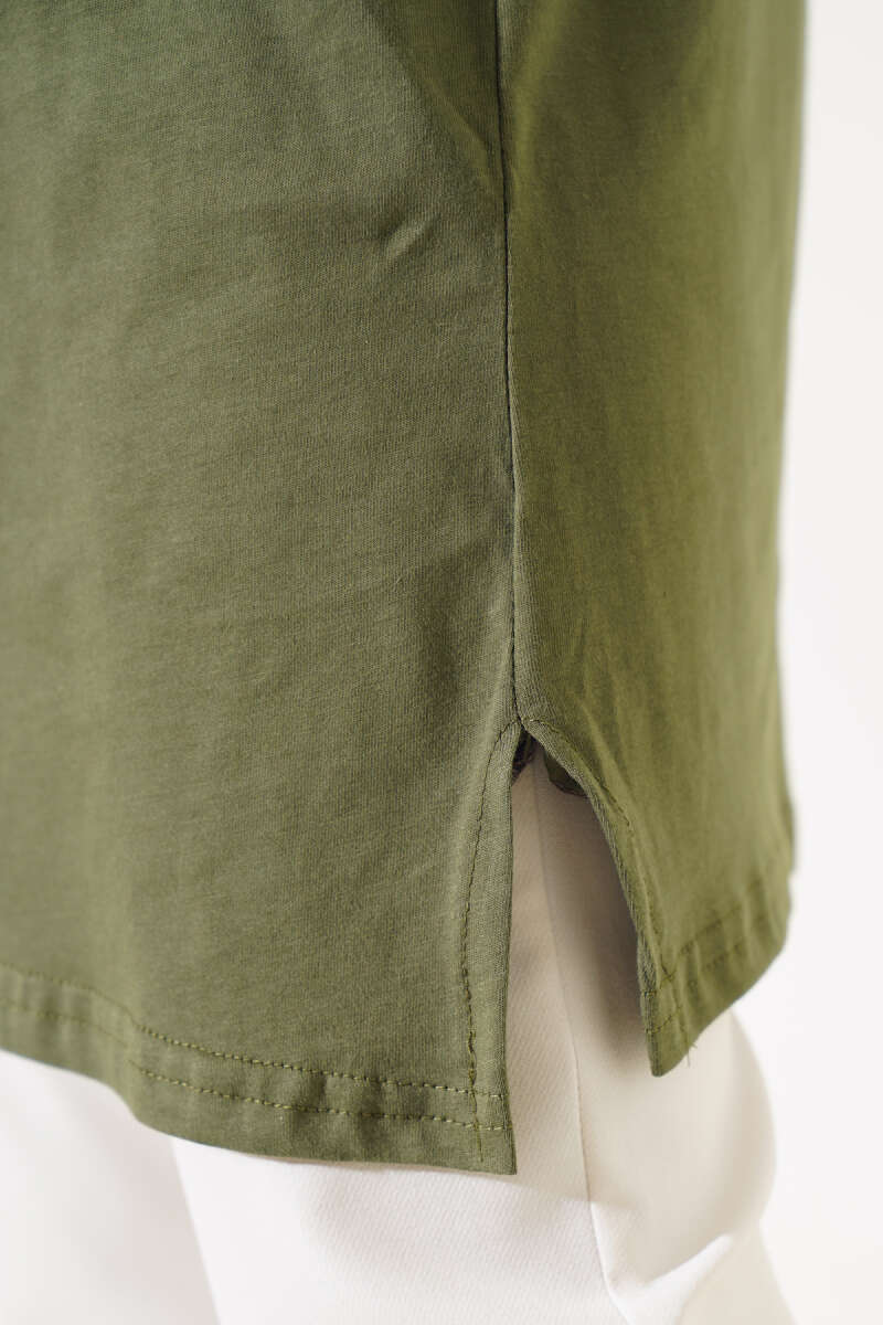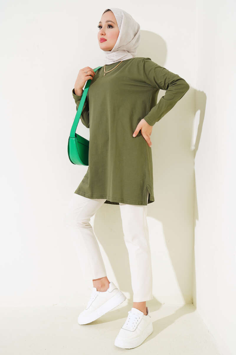 Uzun Kol Basic Tunik Haki