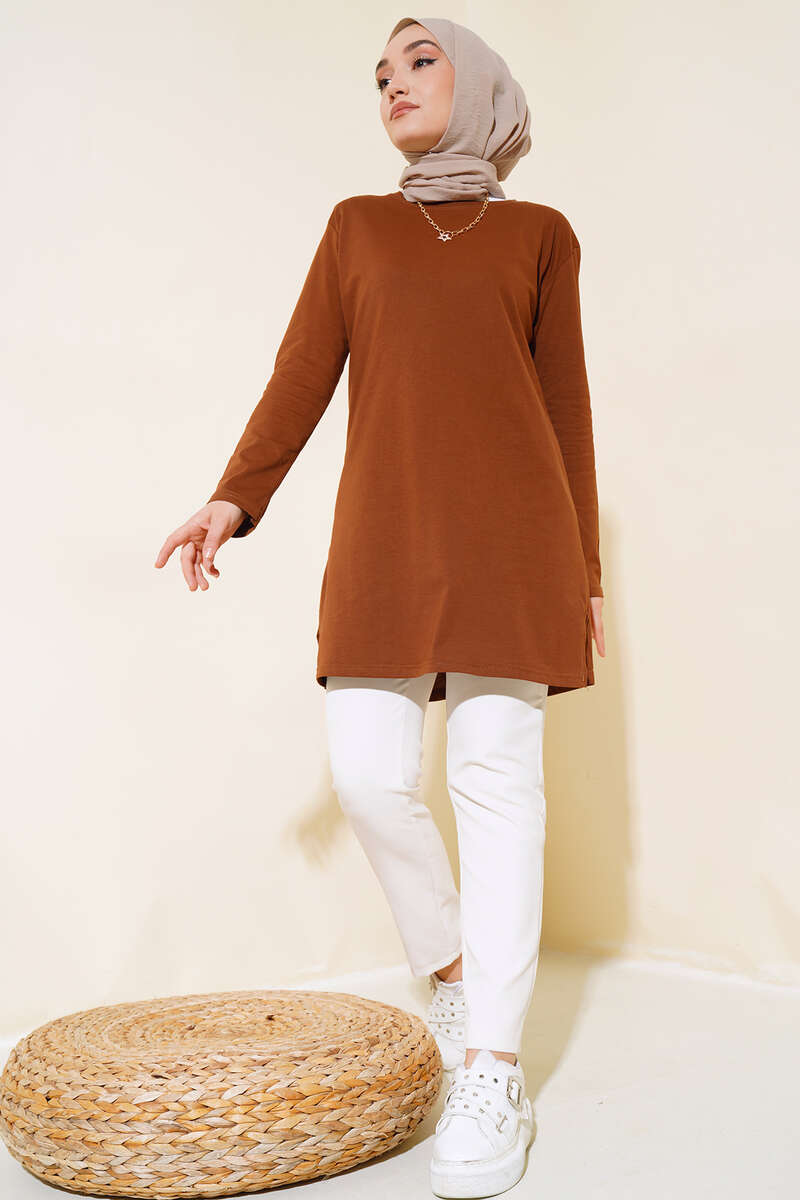 Salaş model tuniğimizi rahatlıkla kombinleyebilirsiniz. Etek ucu yandan yırtmaçlıdır. Omuzları düşüktür. Salaş tunik modelimizin renk seçenekleri mevcuttur.