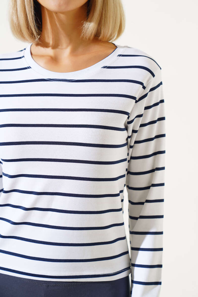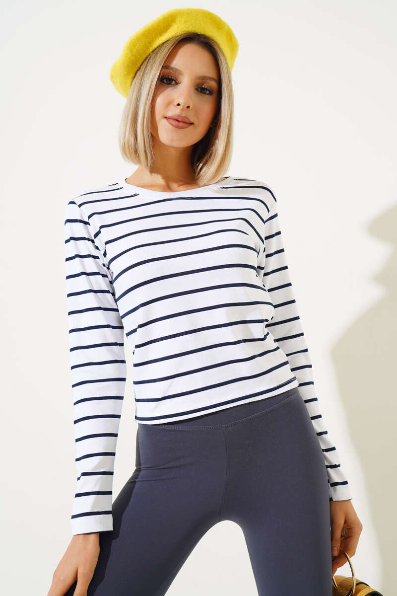 Uzun Kollu Yarım Fermuarlı Bluz Ekru