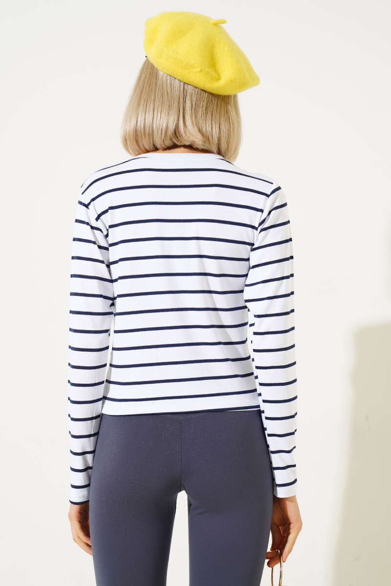 Cepli Çizgi Detaylı Triko Hırka Ekru