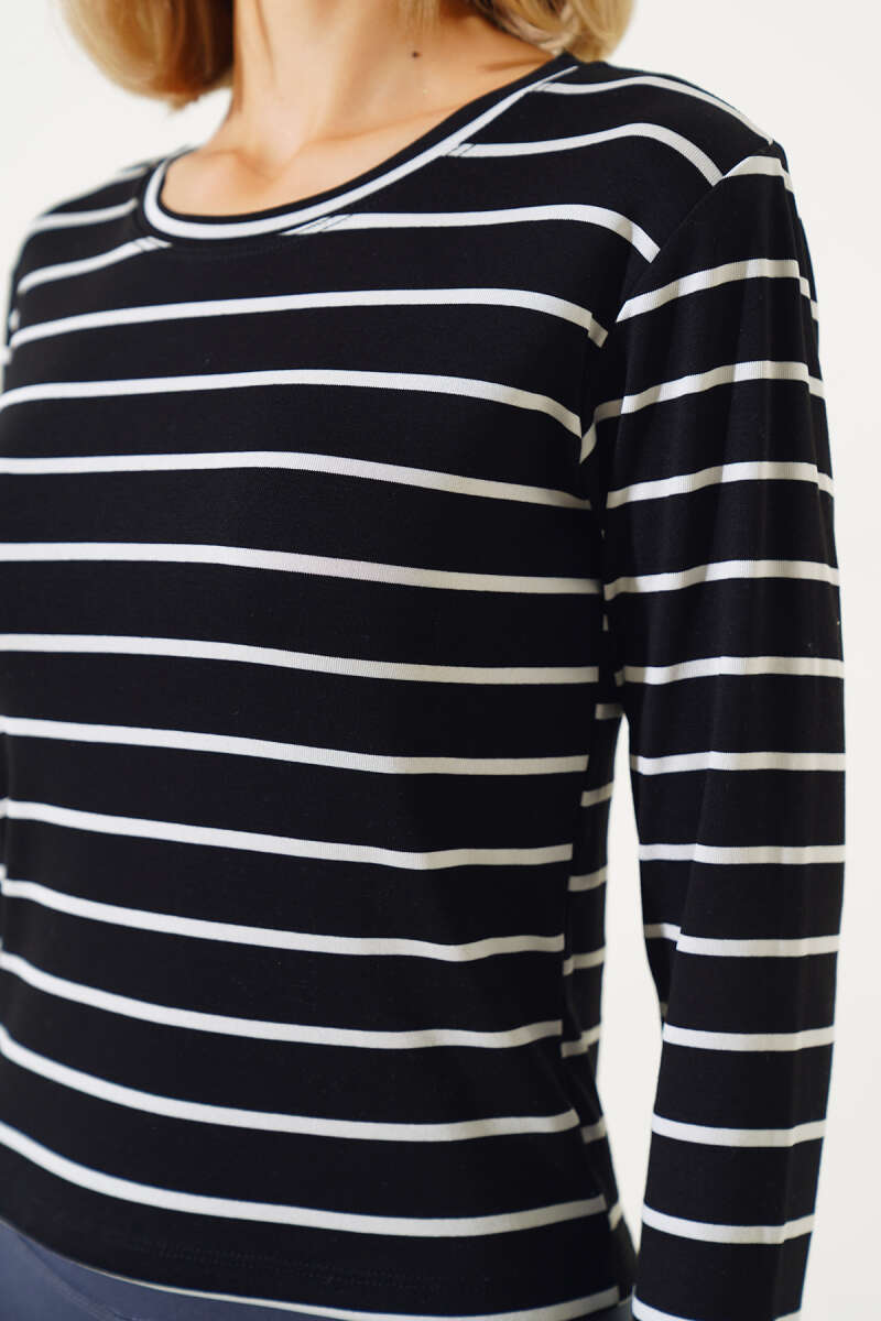 Çizgi Garnili Zımba Detaylı İkili Takım Lacivert