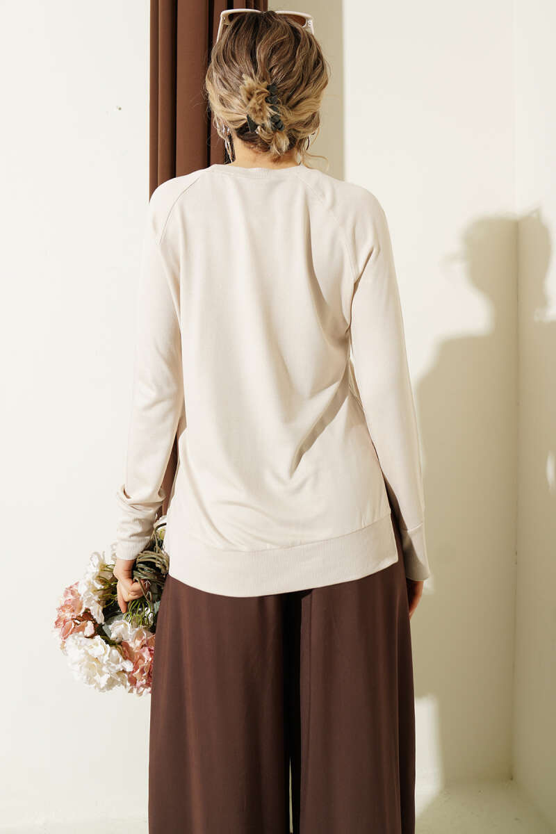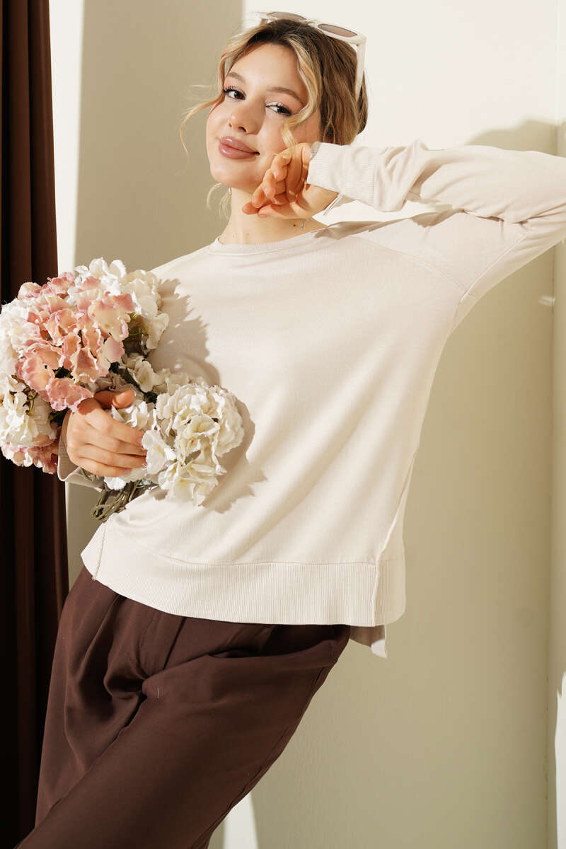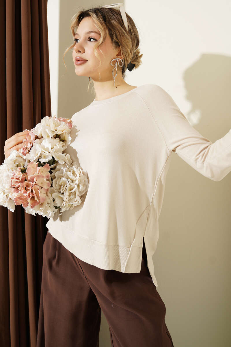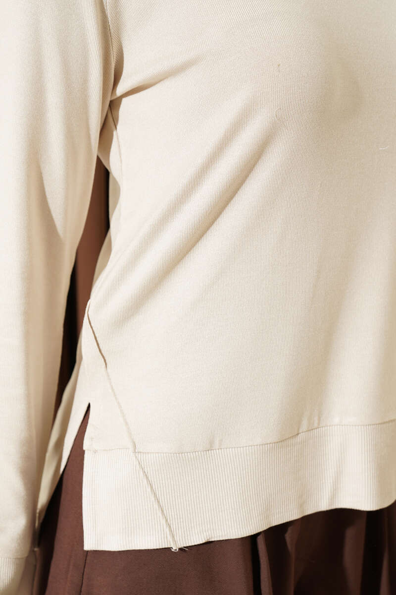 Uzun Kol Yırtmaçlı Viskon Bluz Bej