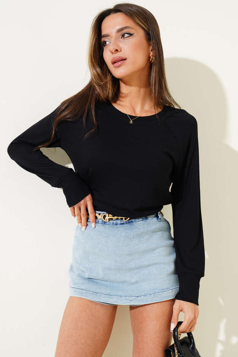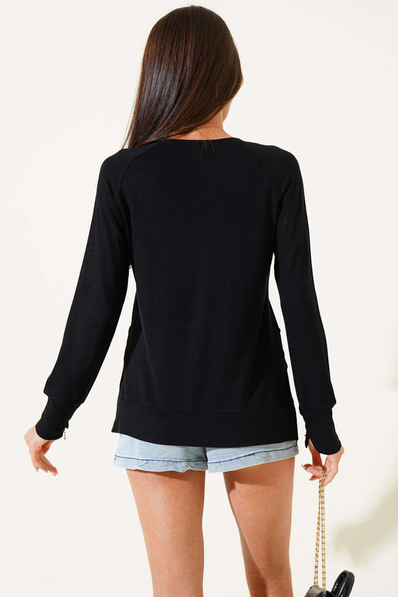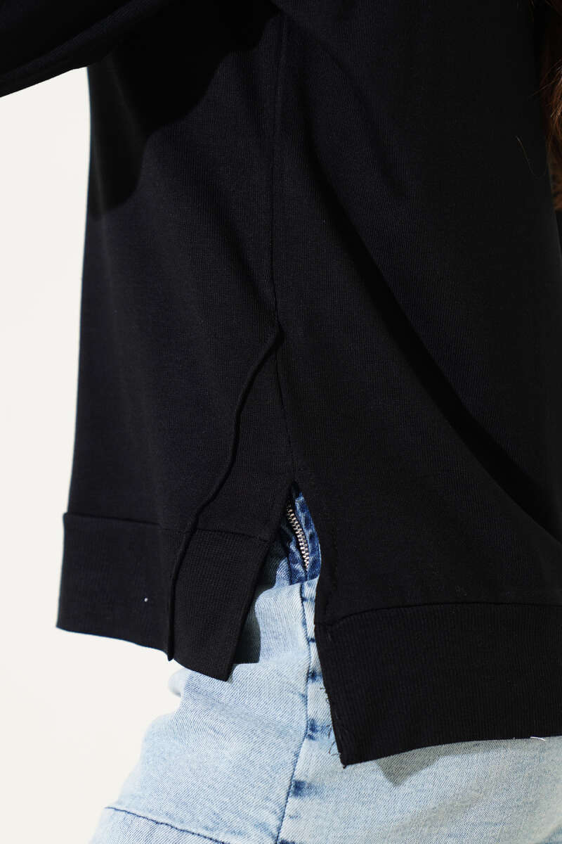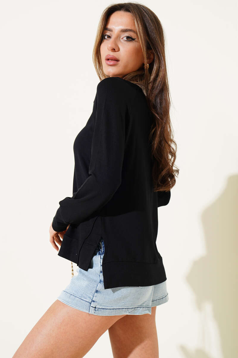 Uzun Kol Yırtmaçlı Viskon Bluz Siyah