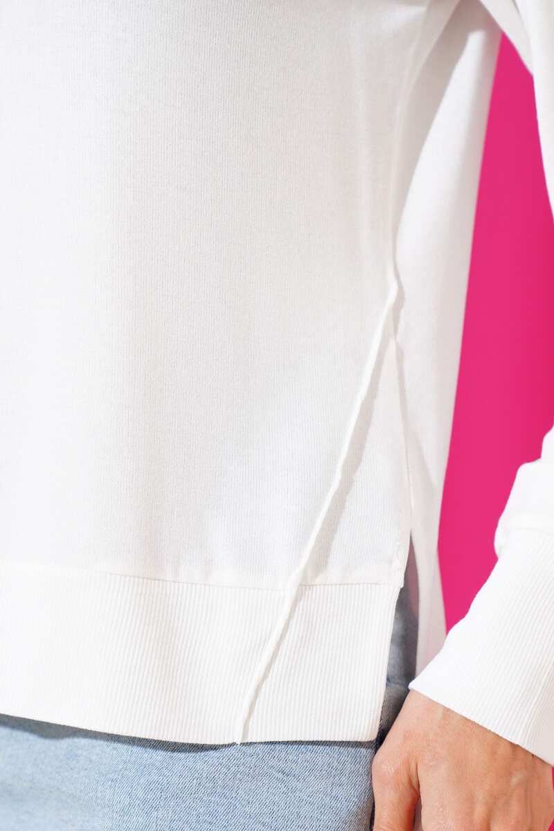 Uzun Kol Yırtmaçlı Viskon Body Ekru