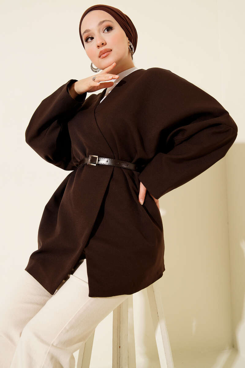 Balıksırtı Desen Balon Kol Kaşe Kaban Füme