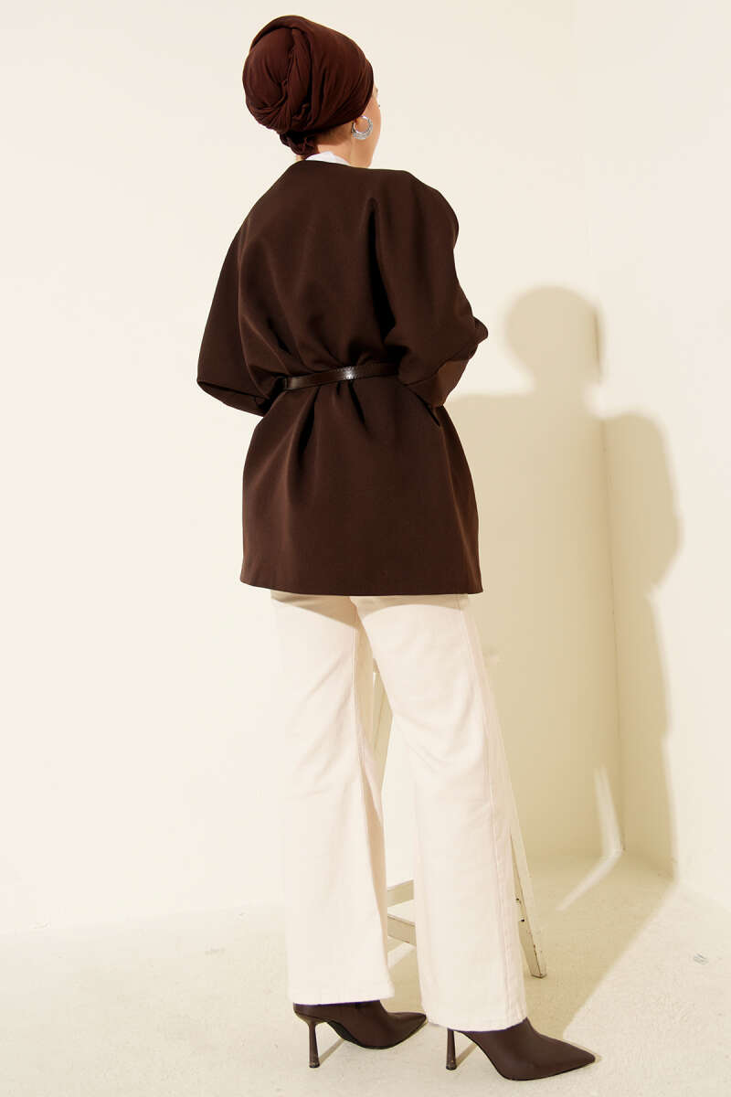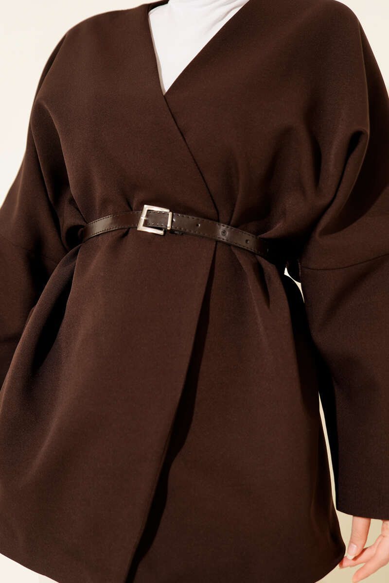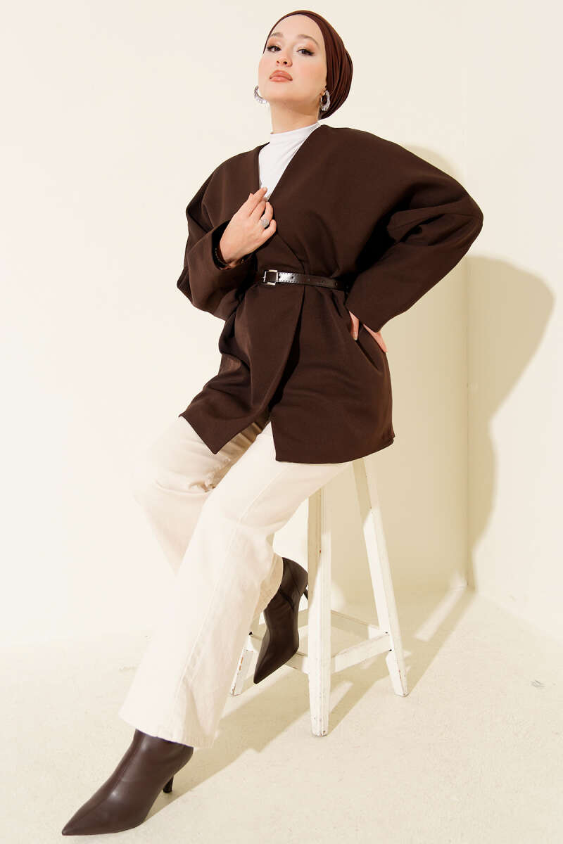Düğmeli Kuşaklı Süet Ceket Kiremit