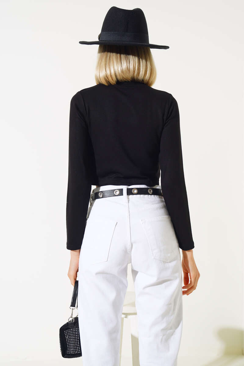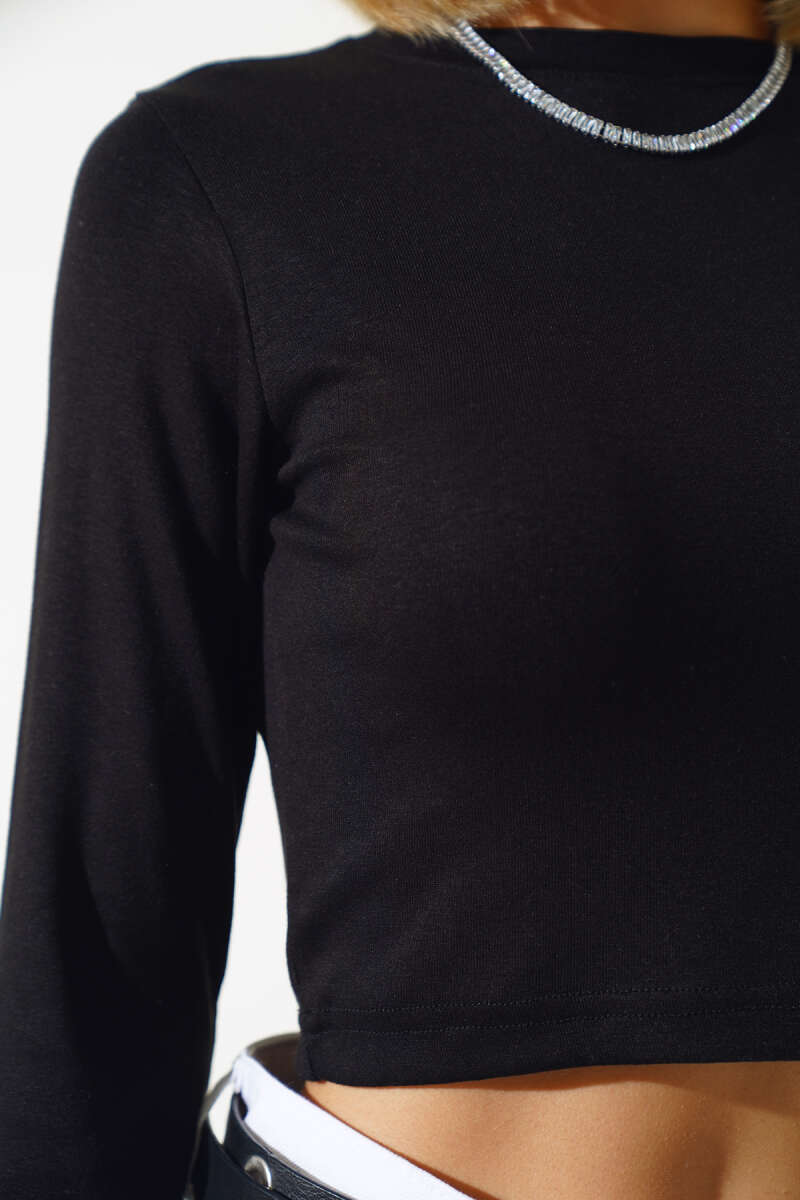 Uzun Kollu Likralı Bluz Siyah