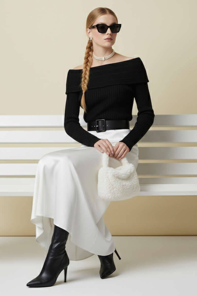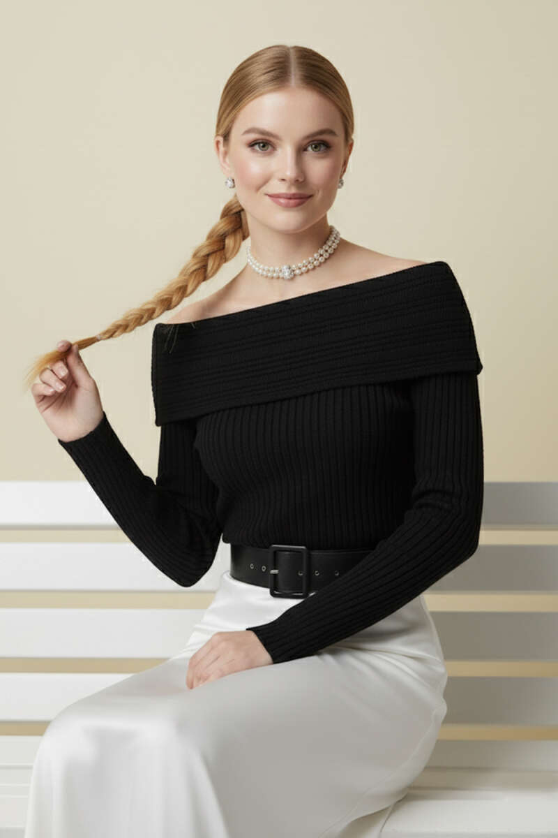 Uzun Kollu Madonna Yaka Kazak Siyah