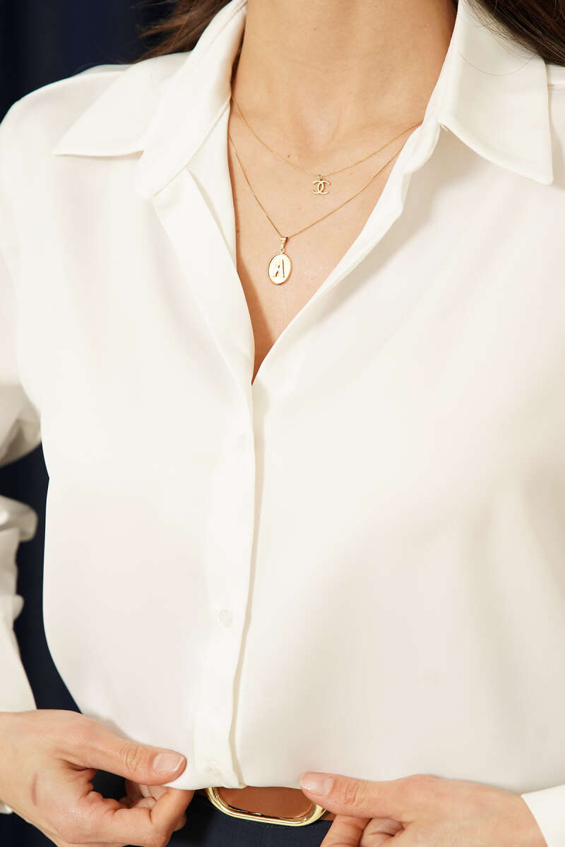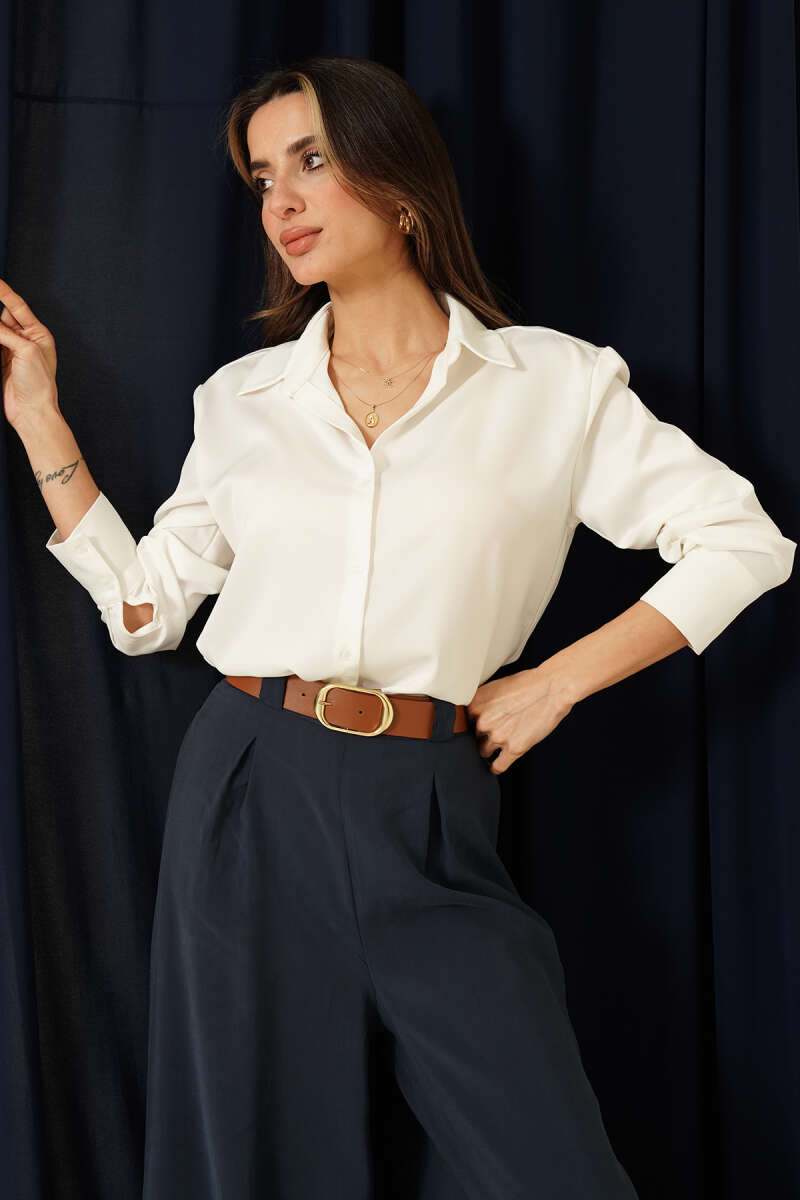 Pul Detaylı Çizgi Kabartma Gömlek Beyaz