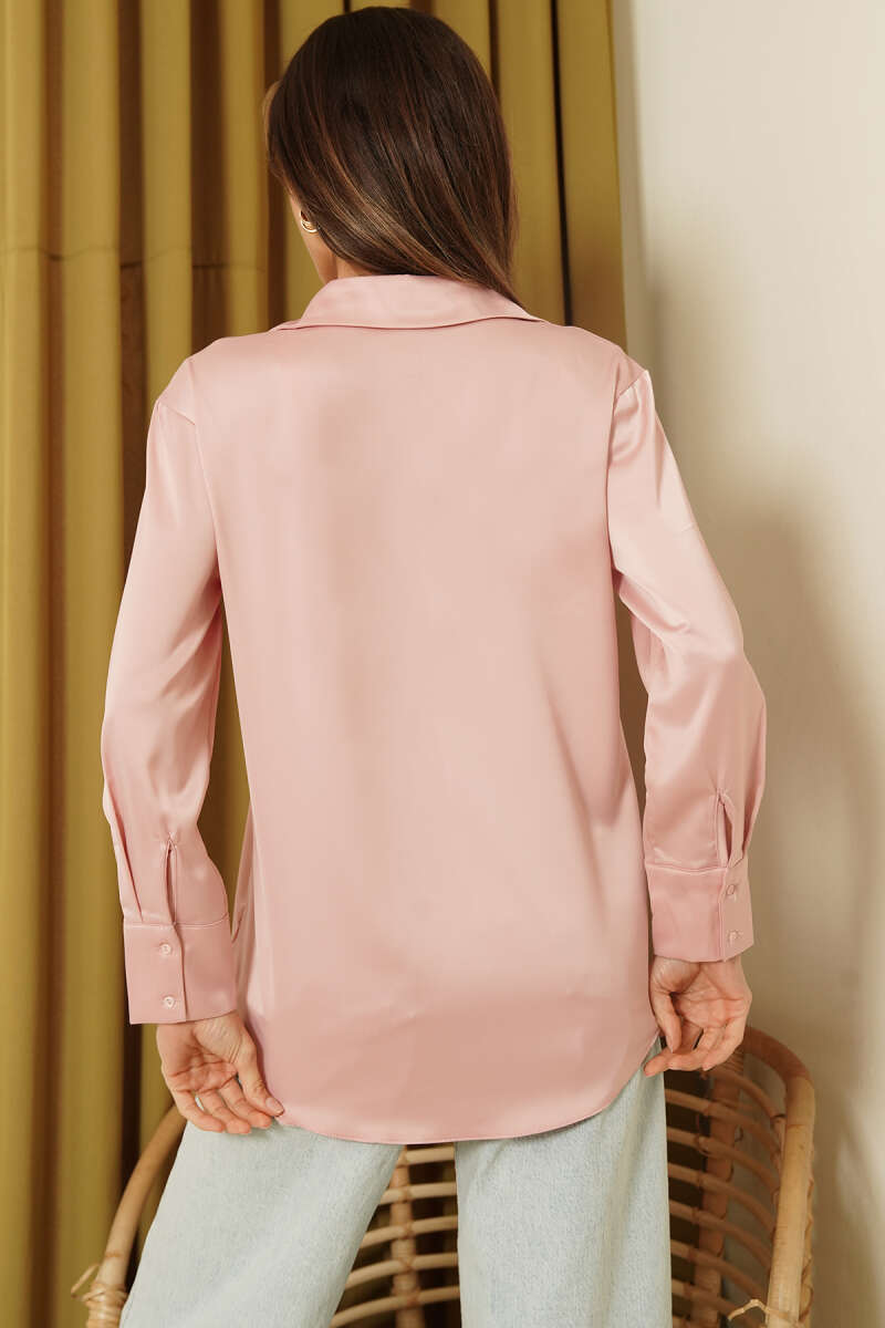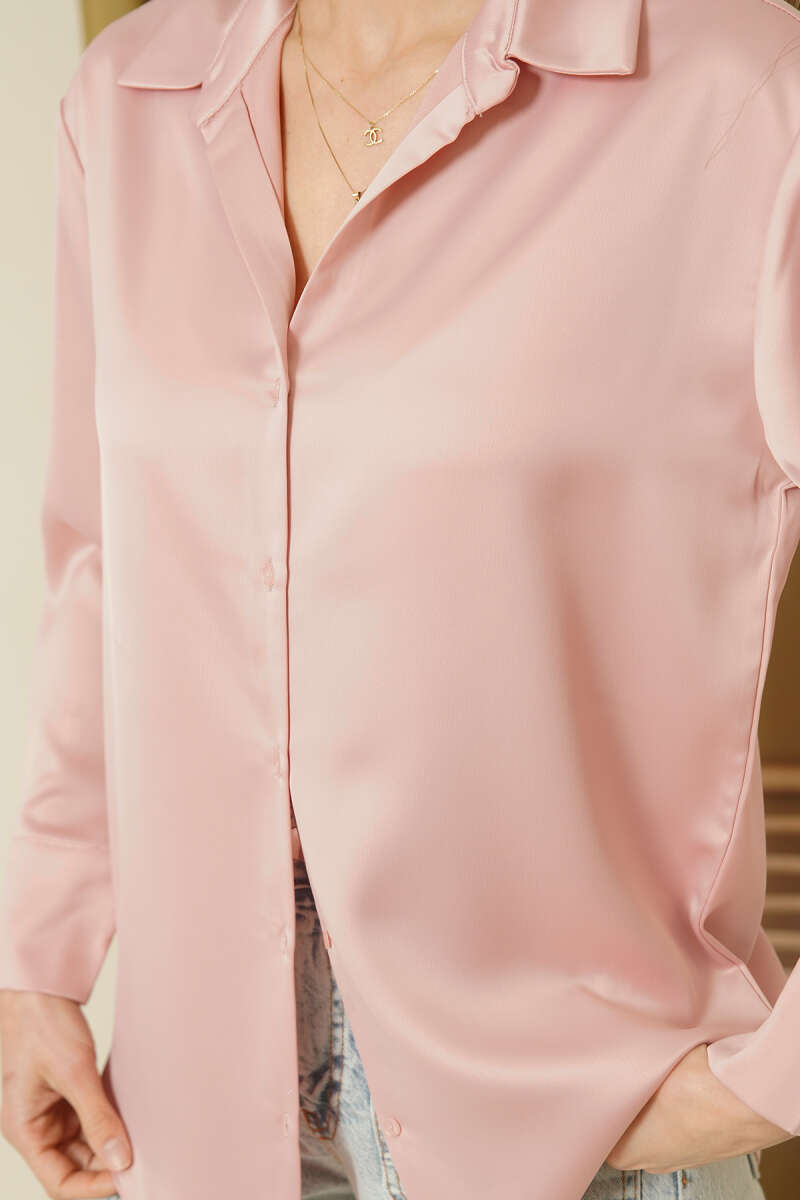 Uzun Kollu Saten Gömlek Gül Kurusu