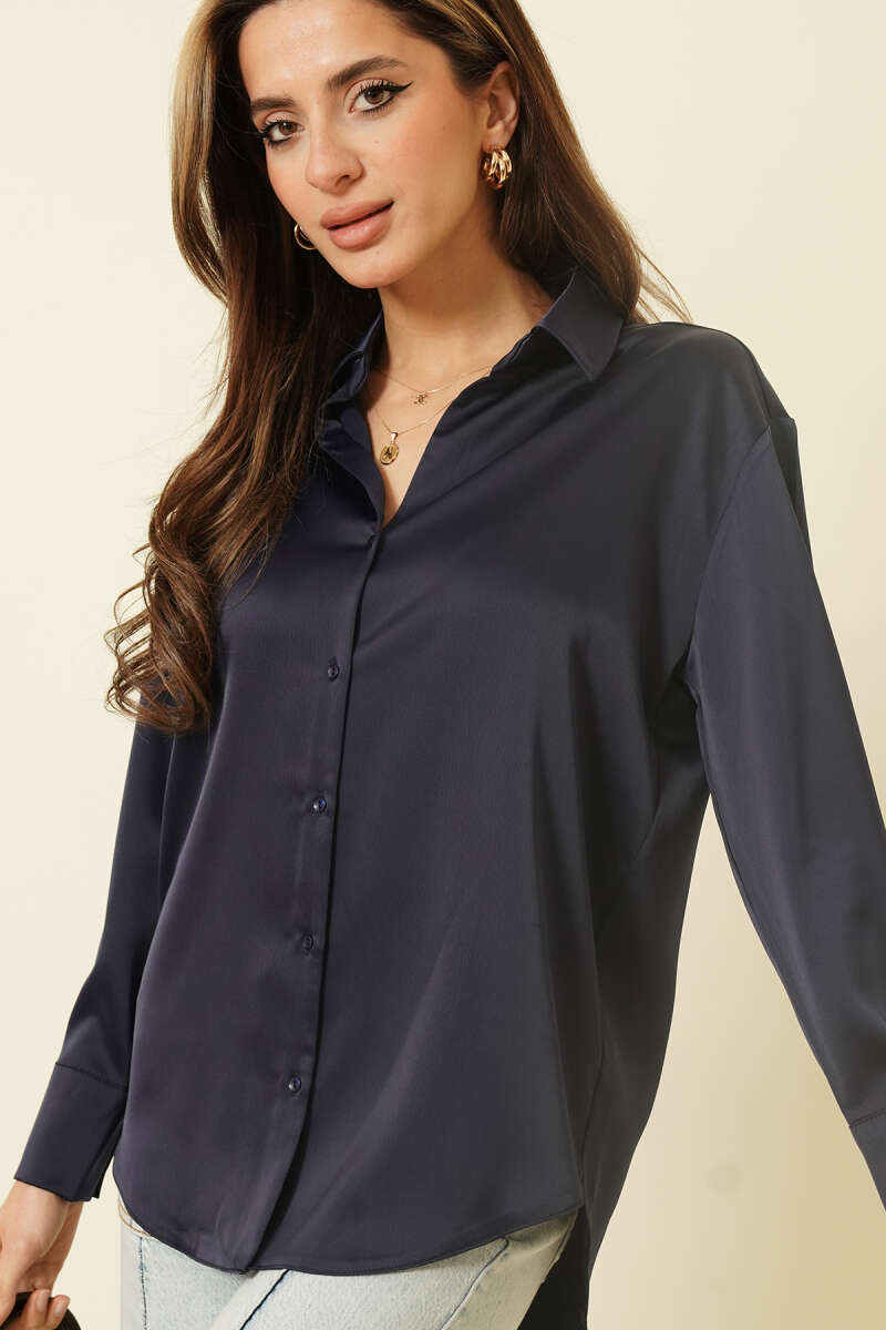 Geniş Kollu Oversize Uzun Gömlek İndigo