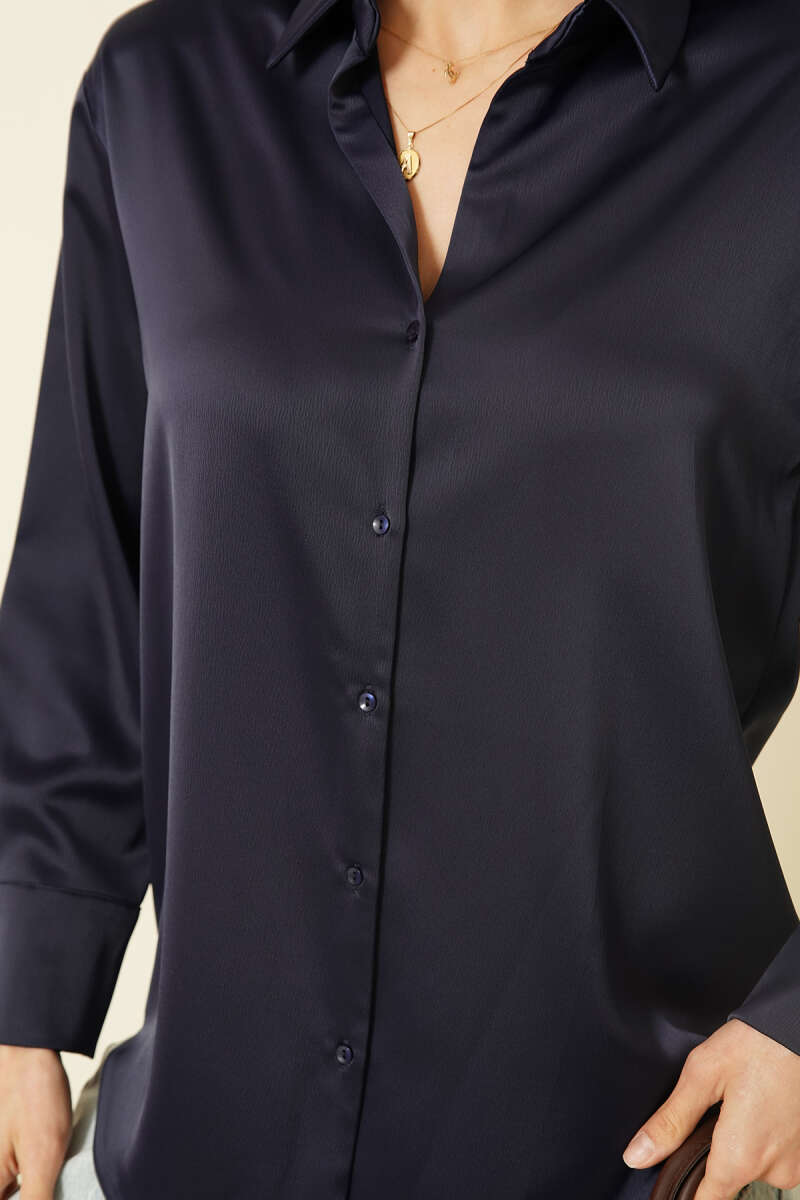 Uzun Kollu Saten Gömlek Gül Kurusu