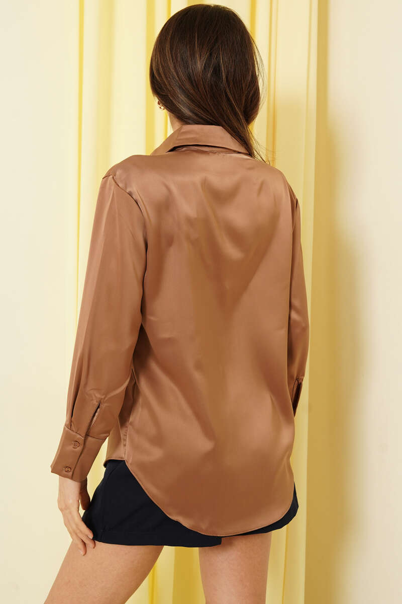 Loyşa Oval Kesim Oversize Tunik Kahve