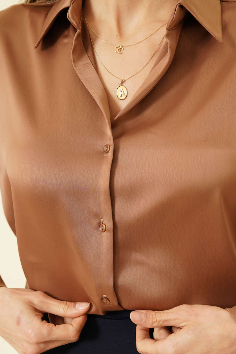 Yan Parça Bağlamalı Salaş Gömlek Bej