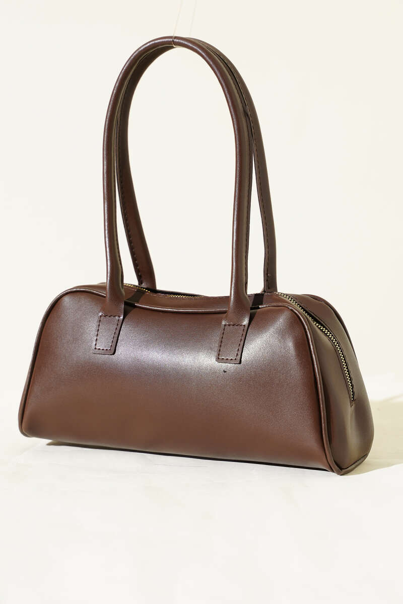 Uzun Kulplu Fermuarlı Baget Çanta Kahve
