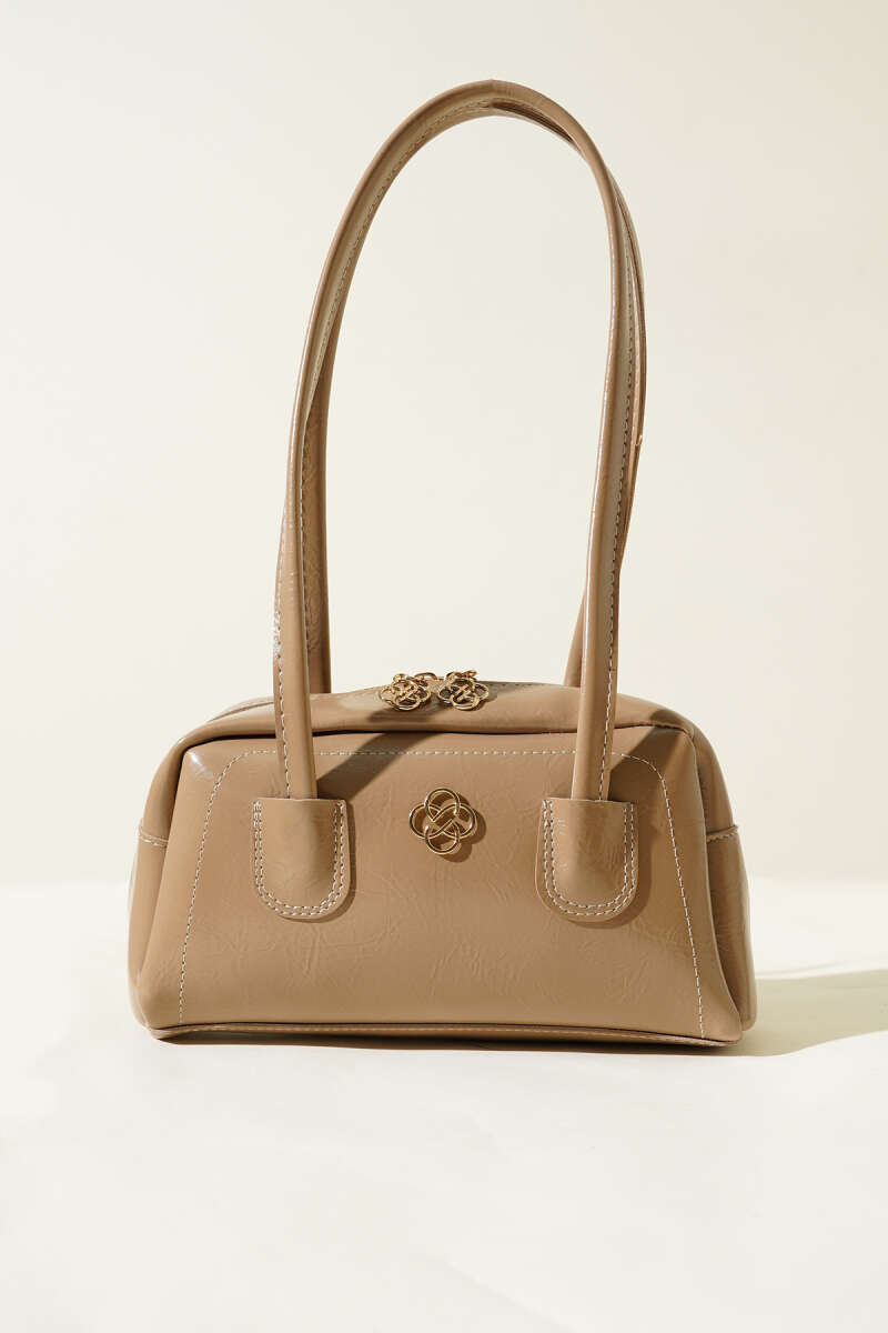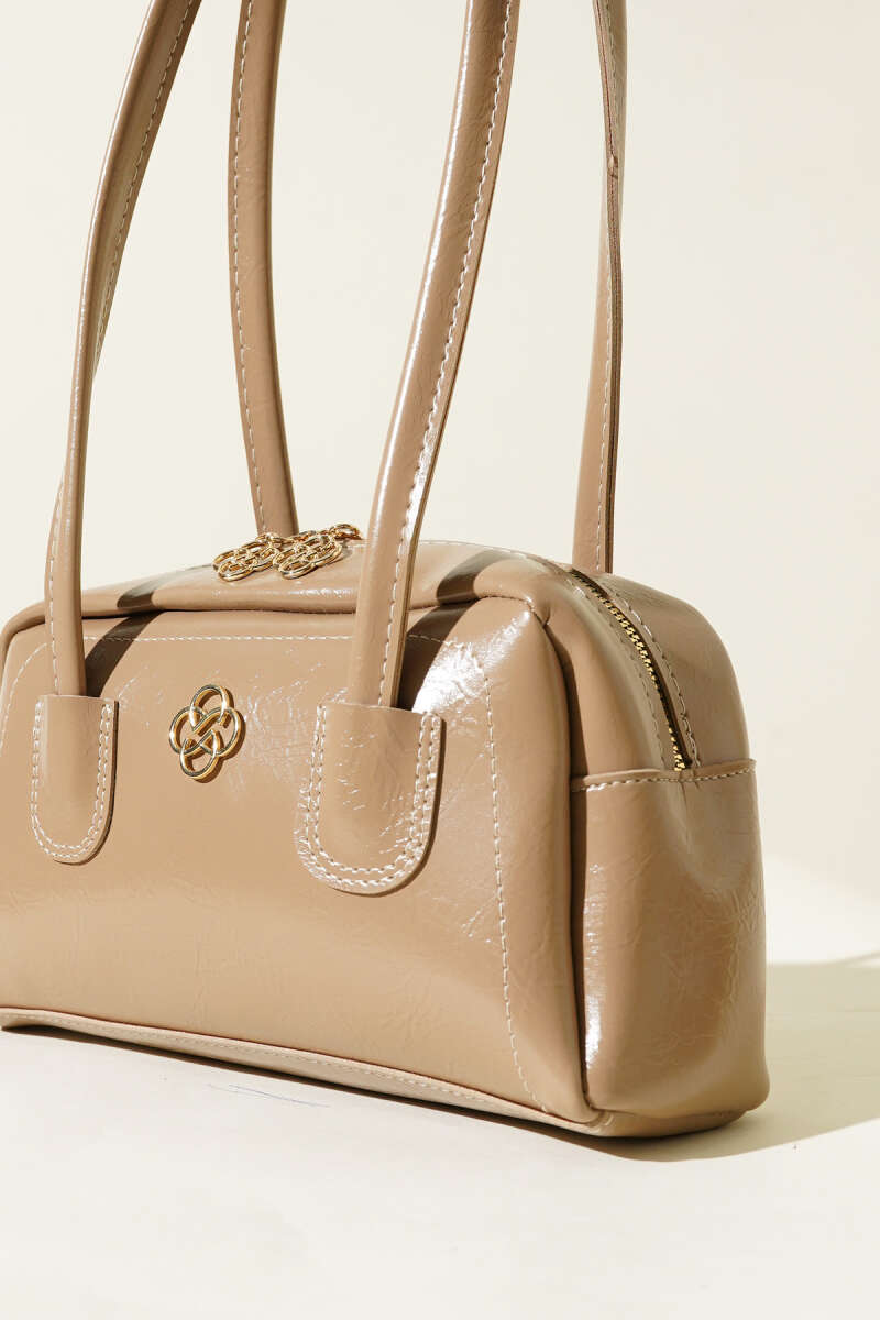 Uzun Kulplu Fermuarlı Rugan Çanta Bej