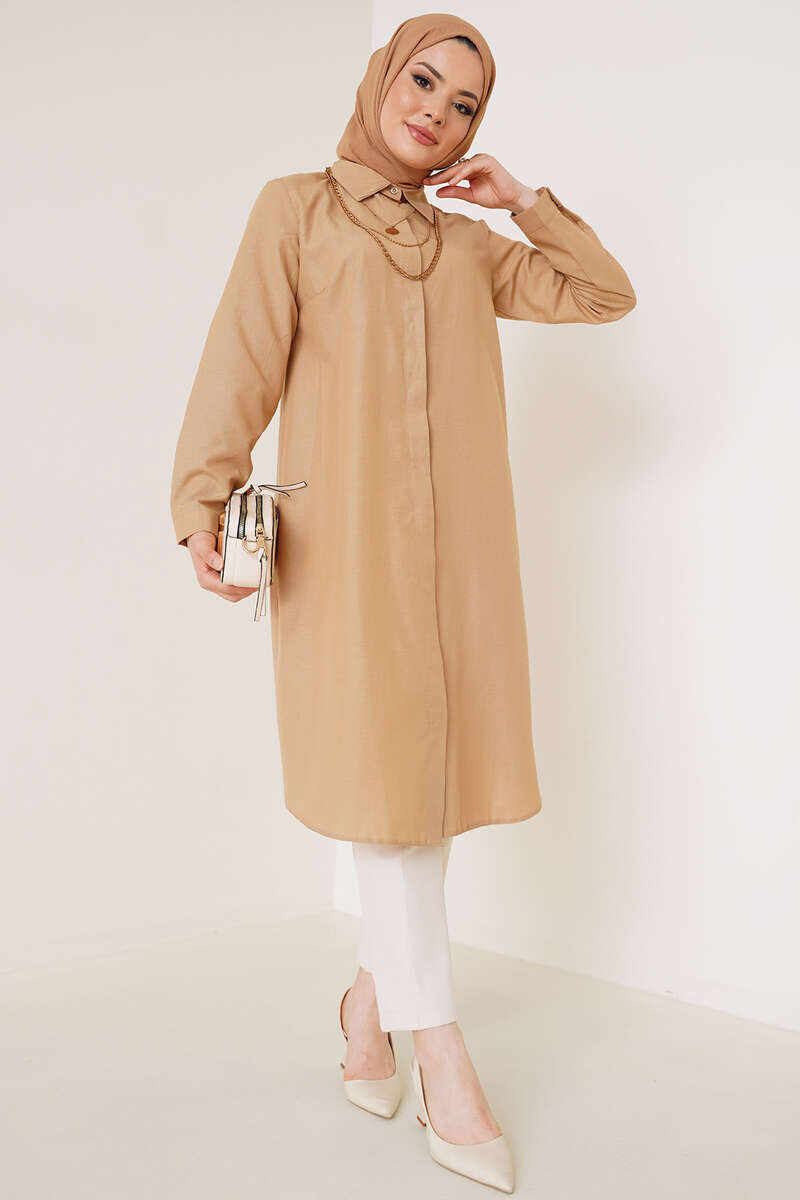 Uzun tunik sevenler için üretilen yeni sezon tuniğimiz sizlerle. Klasik yaka detayı ve boydan düğmeli oluşuyla kullanım kolaylığı sağlar. Kol manşetleri düğmeli olan tuniğin etek ucu D kesimdir.