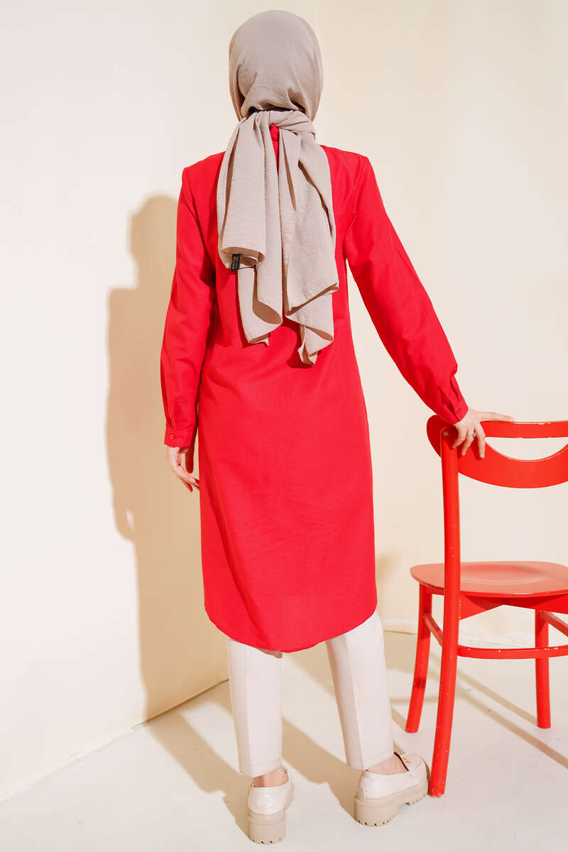 Uzun Model Klasik Yaka Tunik Kırmızı