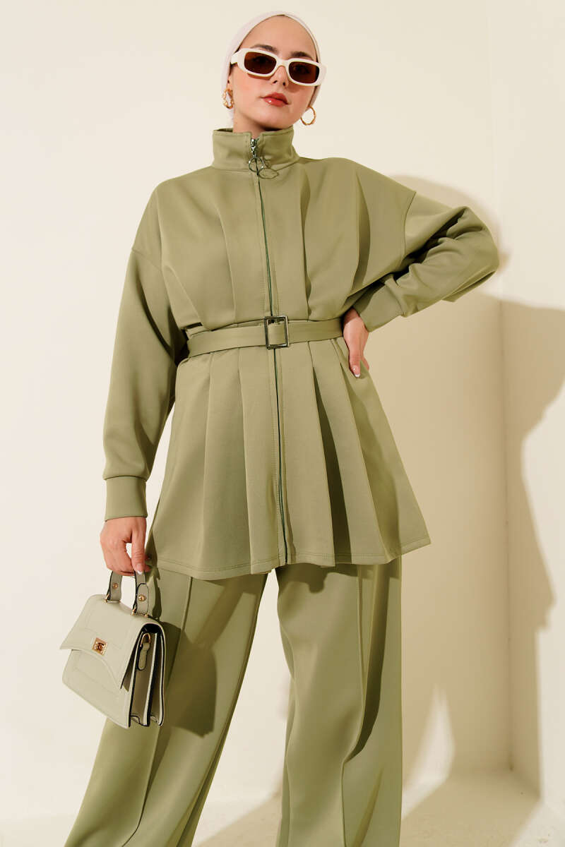 Sahte Cepli Fermuarlı Loyşa İkili Takım Çağla Yeşili