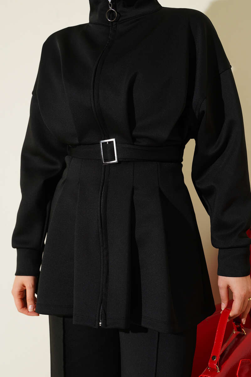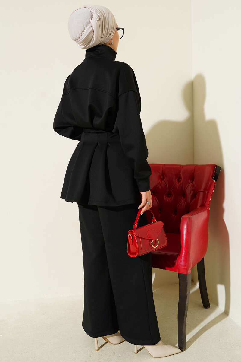 Çizgi Garnili Bisiklet Yaka Loyşa İkili Takım Siyah
