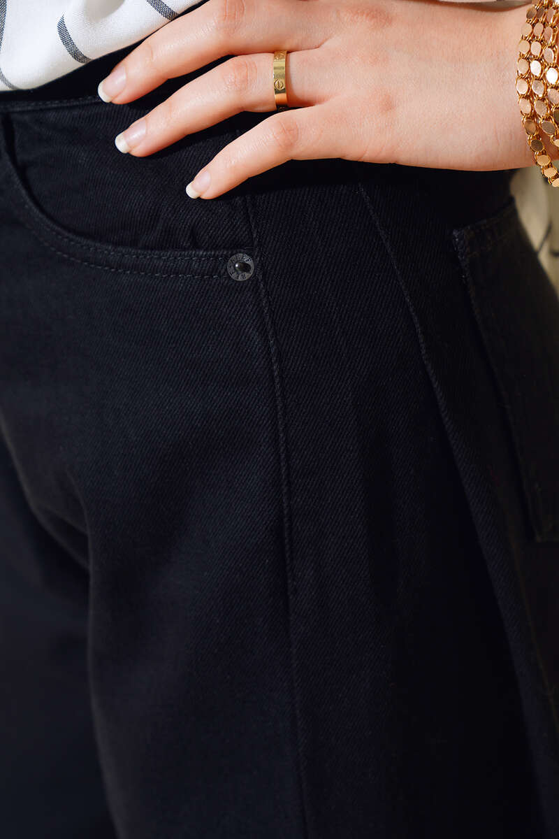 Yeni sezon pantolonumuz sizler için geldi. Pantolonumuzun uzun salaş modeldir. İki adet yanında, iki adet arkasında cebi vardır. Pantolonumuzun beli düğmeli ve fermuarlıdır. Beş adet kemer köprüsü vardır. Pantolonun yanı pilelidir. Renk seçenekleri vardır.