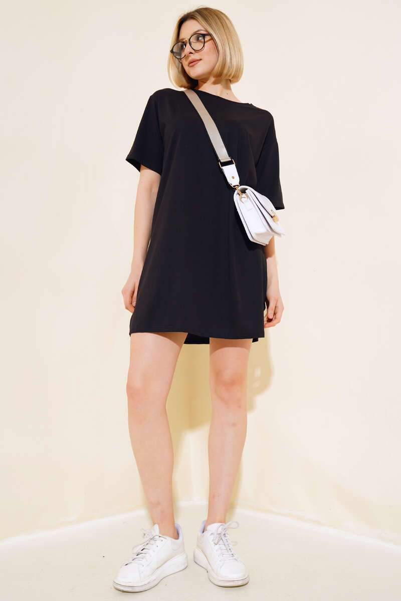 Yeni sezon t-shirt modelimiz sizlerle beraber. Basic modeldir. Oval yakadır. T-shirt modelimizin etek yanları yırtmaçlıdır. Kısa kolludur. Düz ve basic t-shirtümüz kombinlerinizin parçası olacaktır.