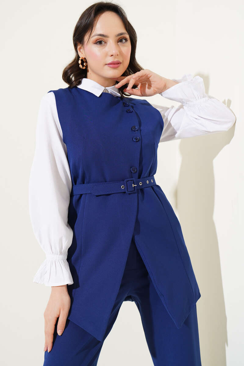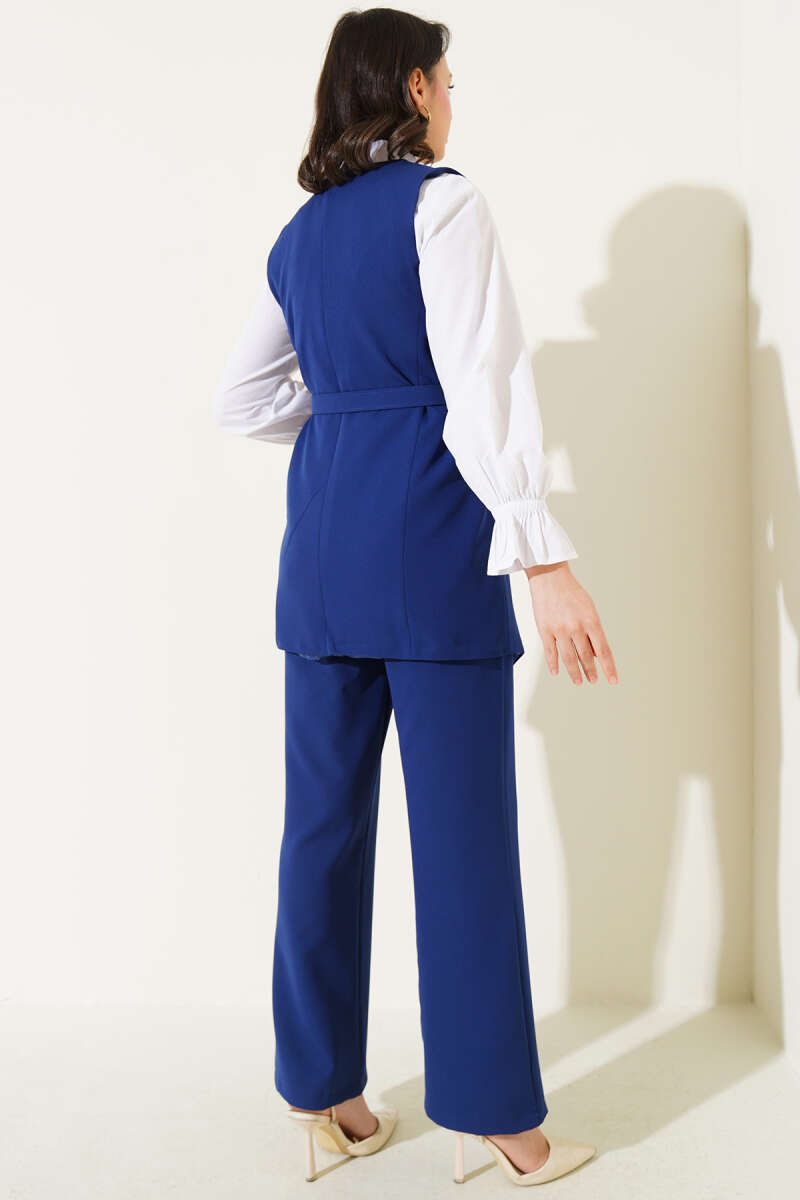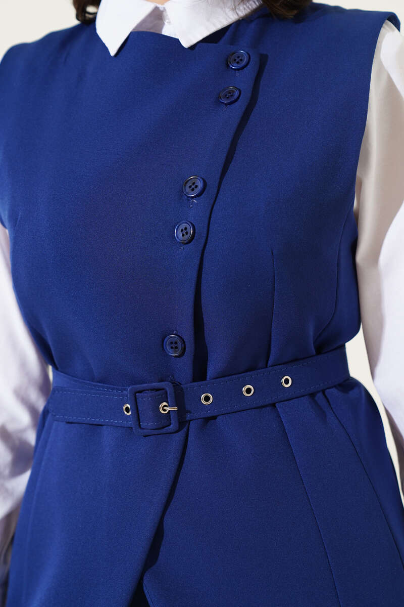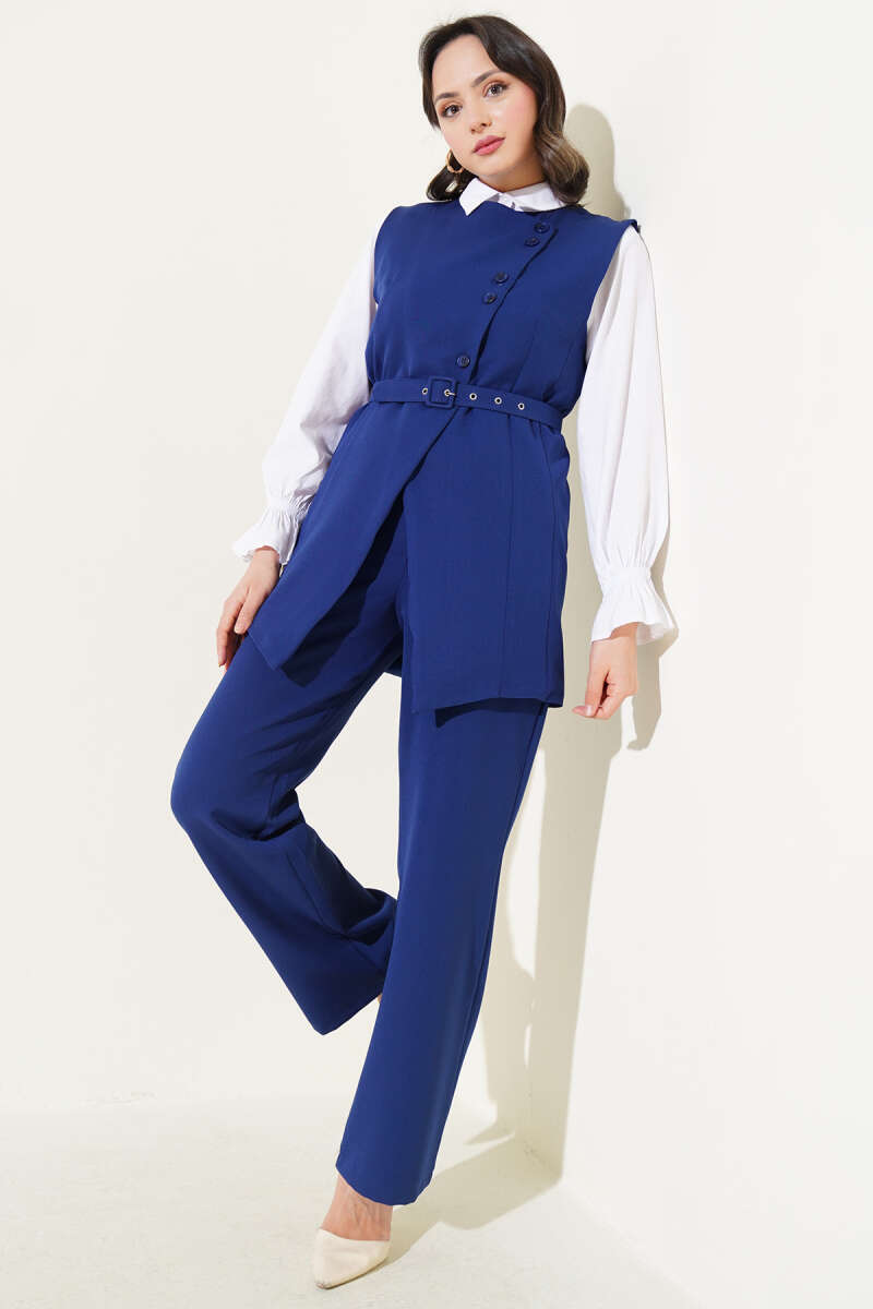 Uzun Yelekli Çapraz Düğmeli İkili Takım Lacivert
