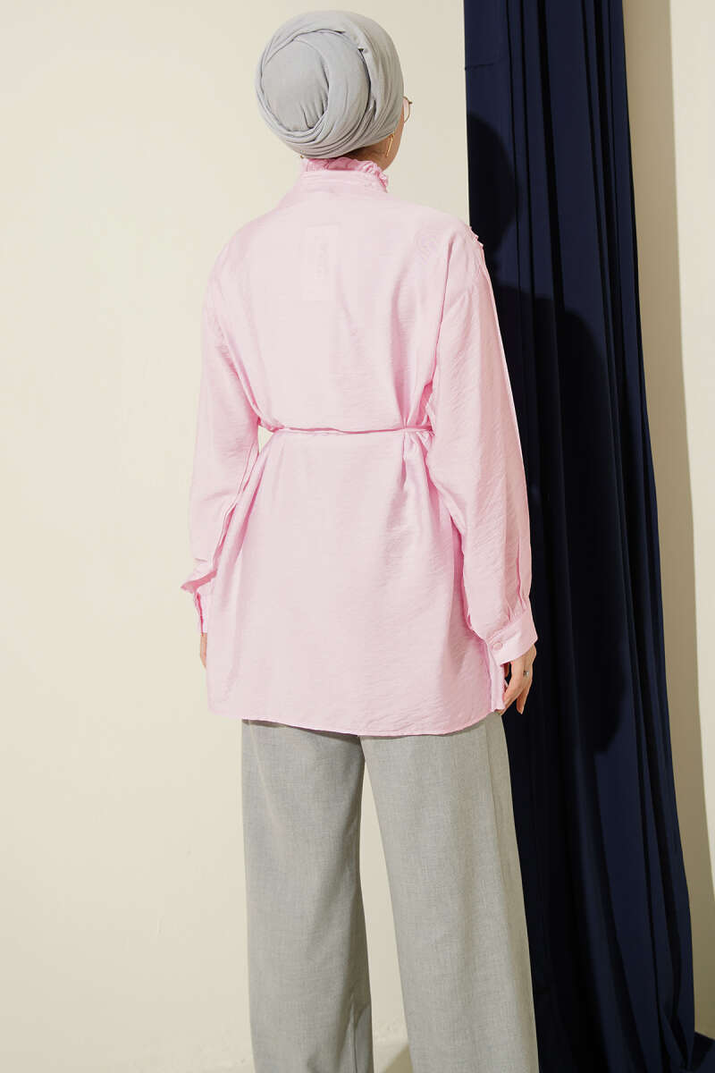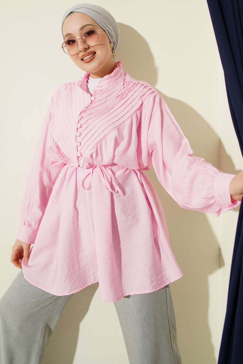 Gömlek Yaka Ekose Garnili Tunik Kahve