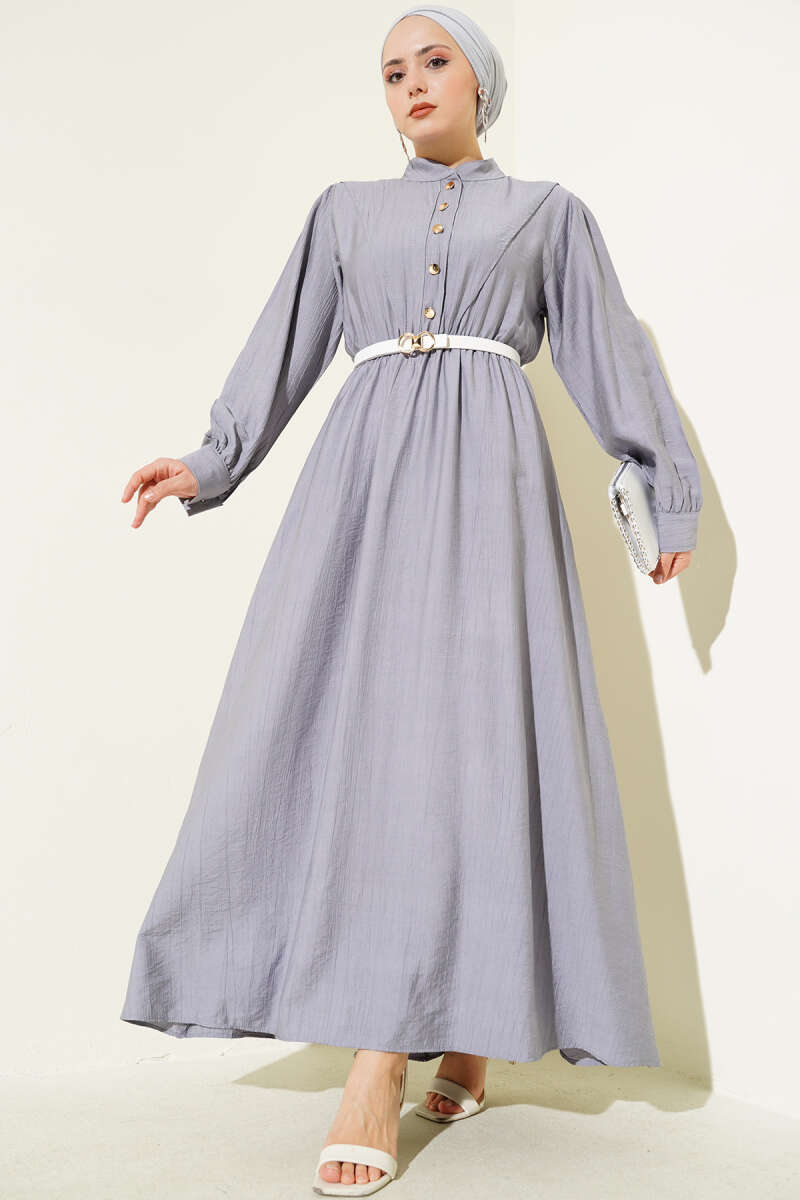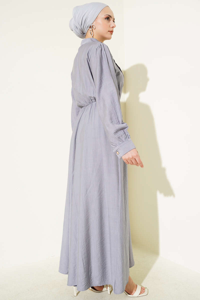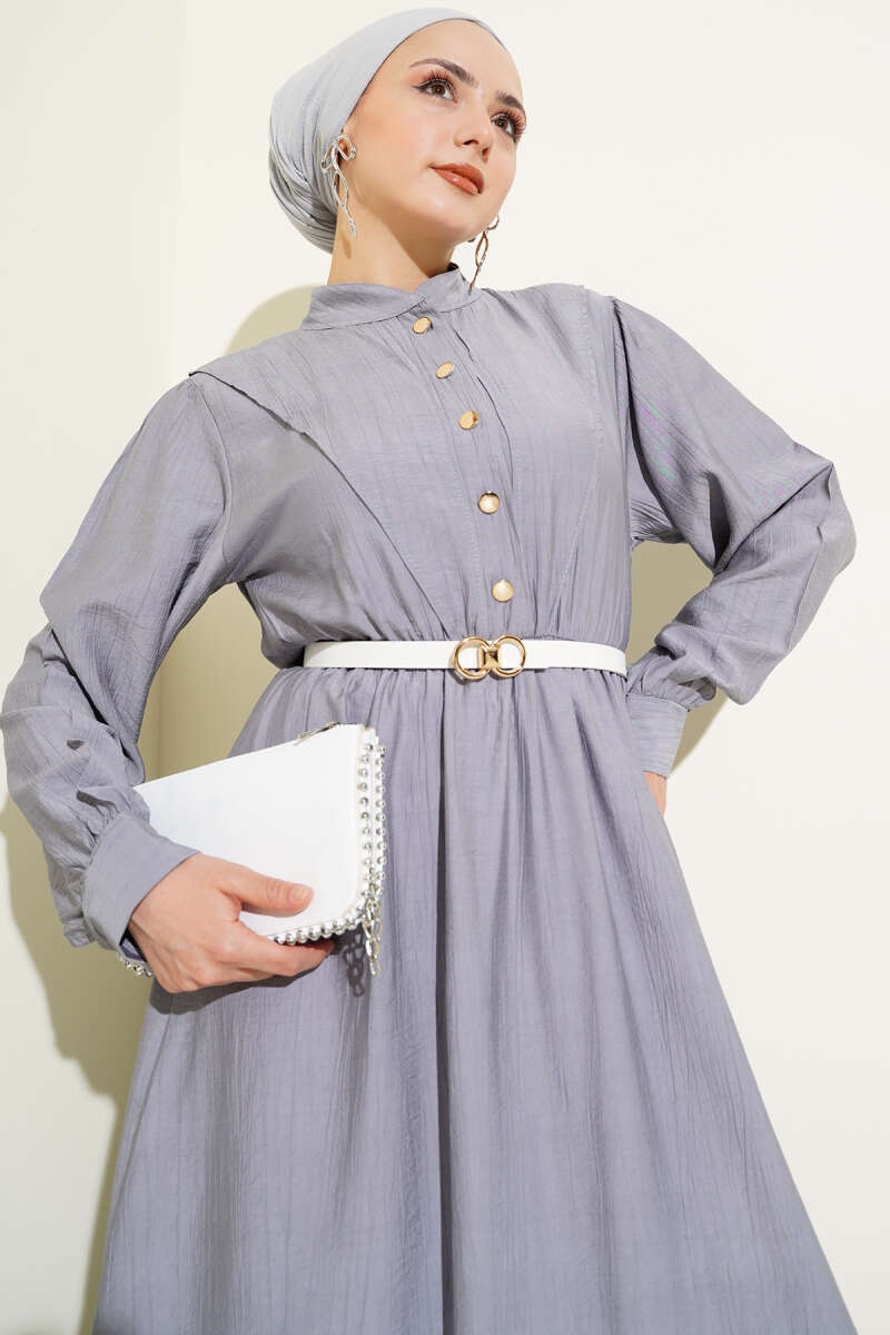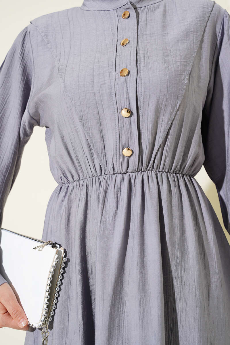 Kolları Fiyonk Detaylı Selanik Elbise Gri
