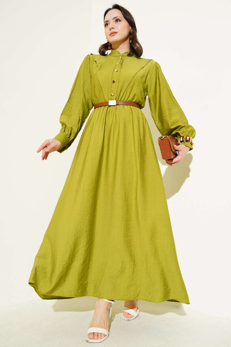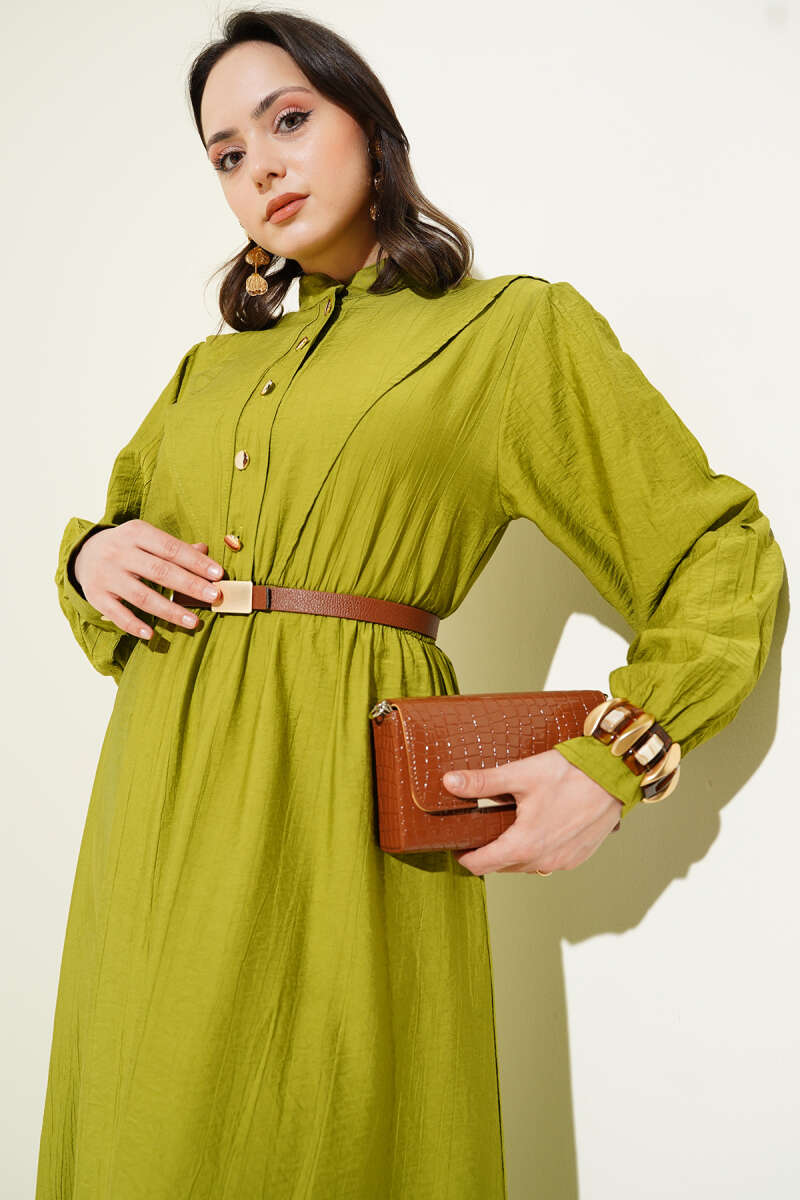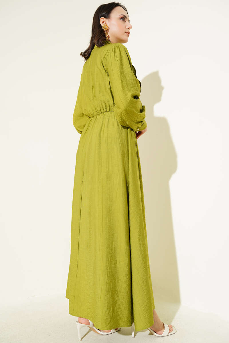 Pirinç Örgü Düşük Omuz Triko Tunik Çağla Yeşili