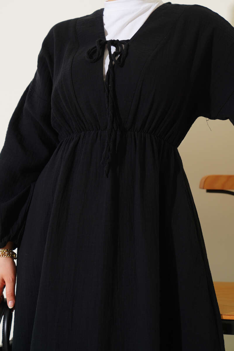 Şerit Ajur Desen Triko Elbise Siyah
