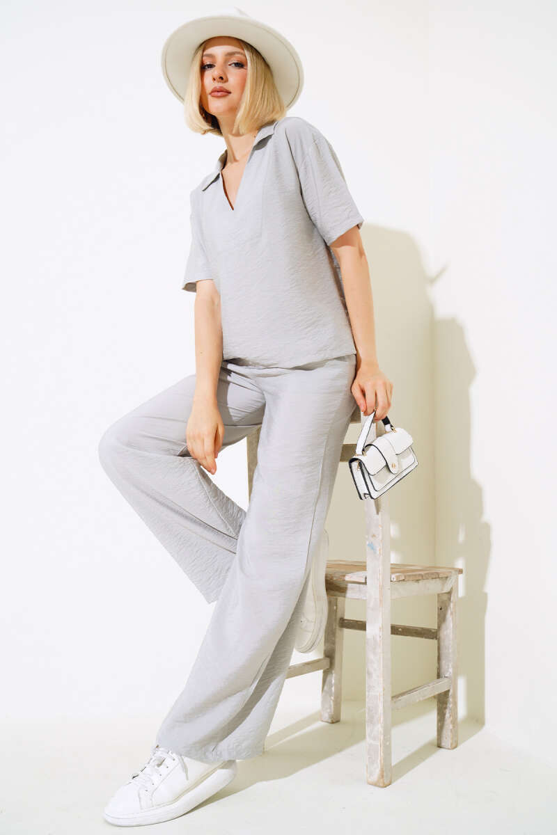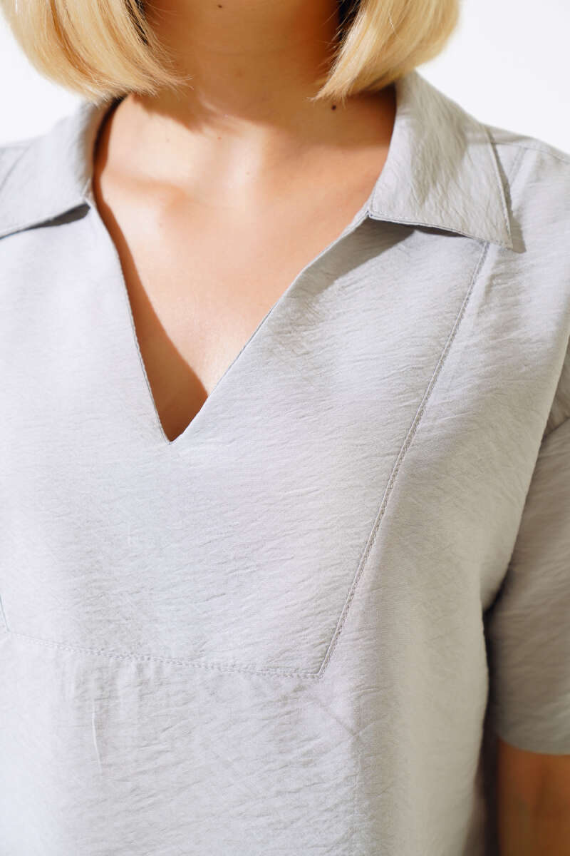 Mini Taşlı Kayık Yaka Bluz Ekru