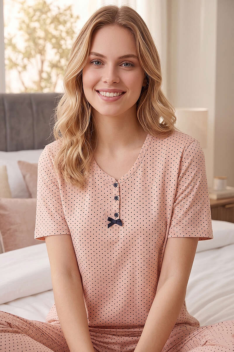 V Yaka Çiçekli Kısa Kol Pijama Takım Yavru Ağzı