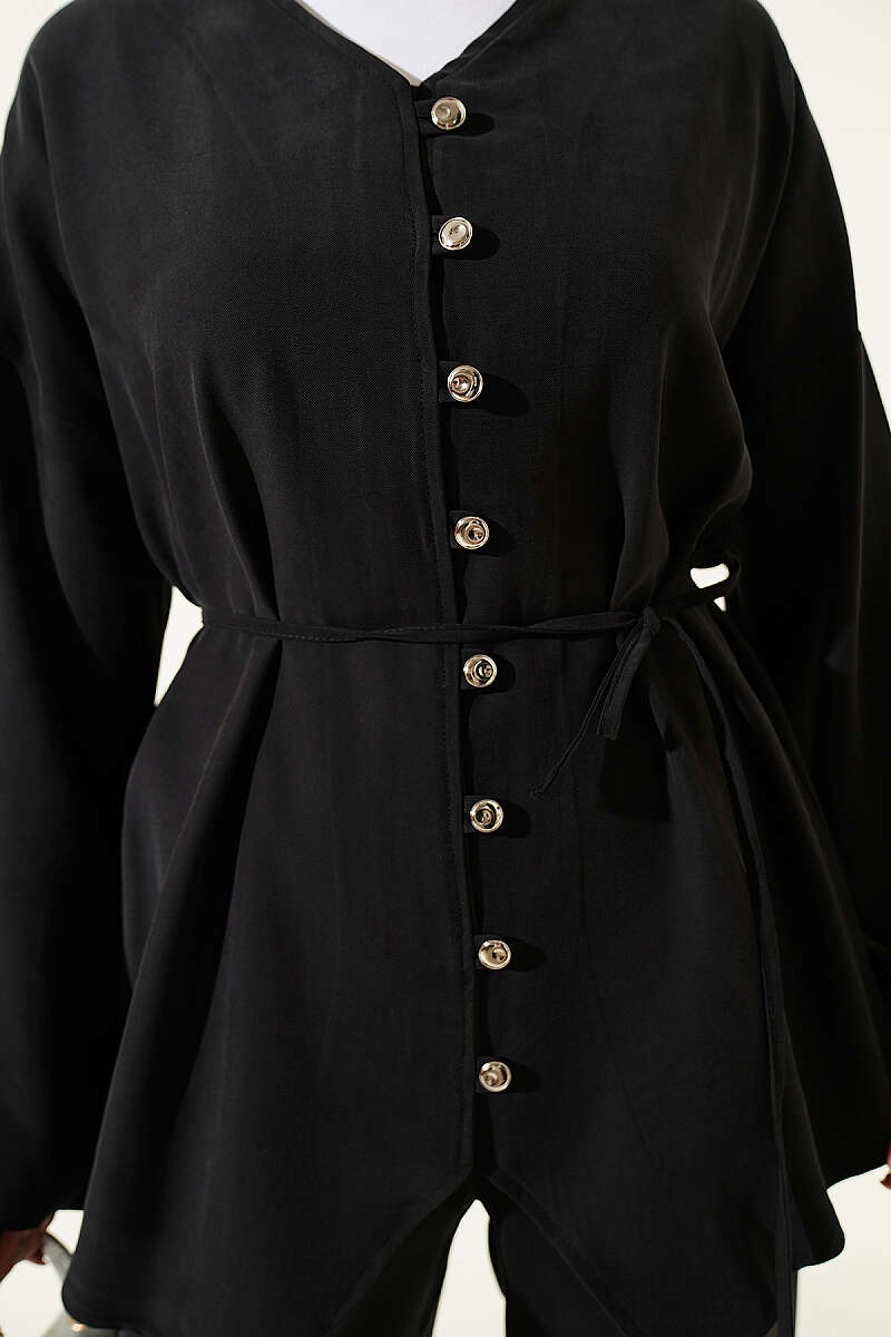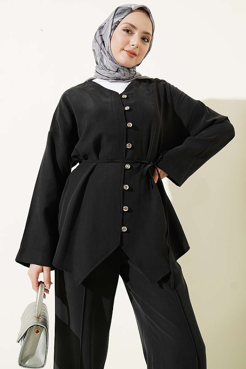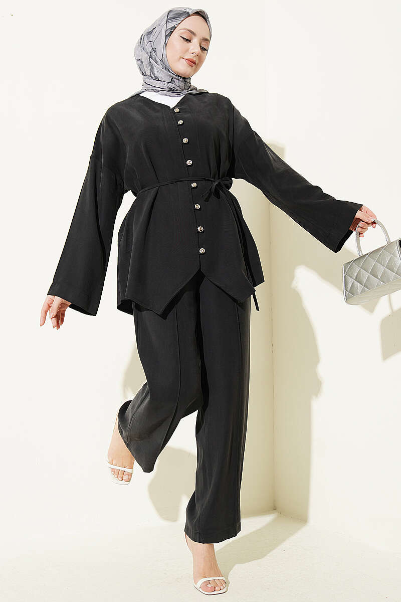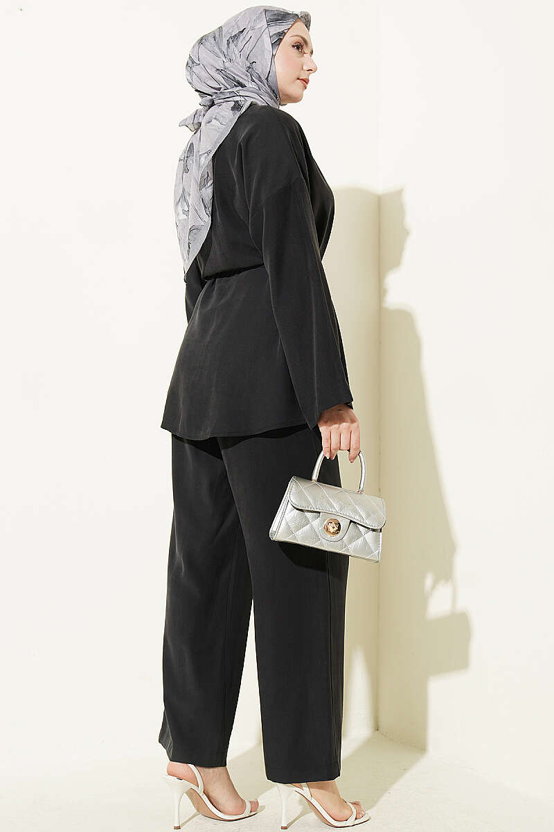 Bel Lastikli Kemerli Tensel Etek Siyah