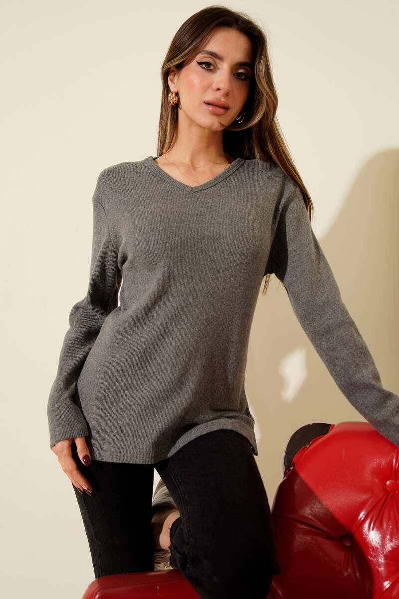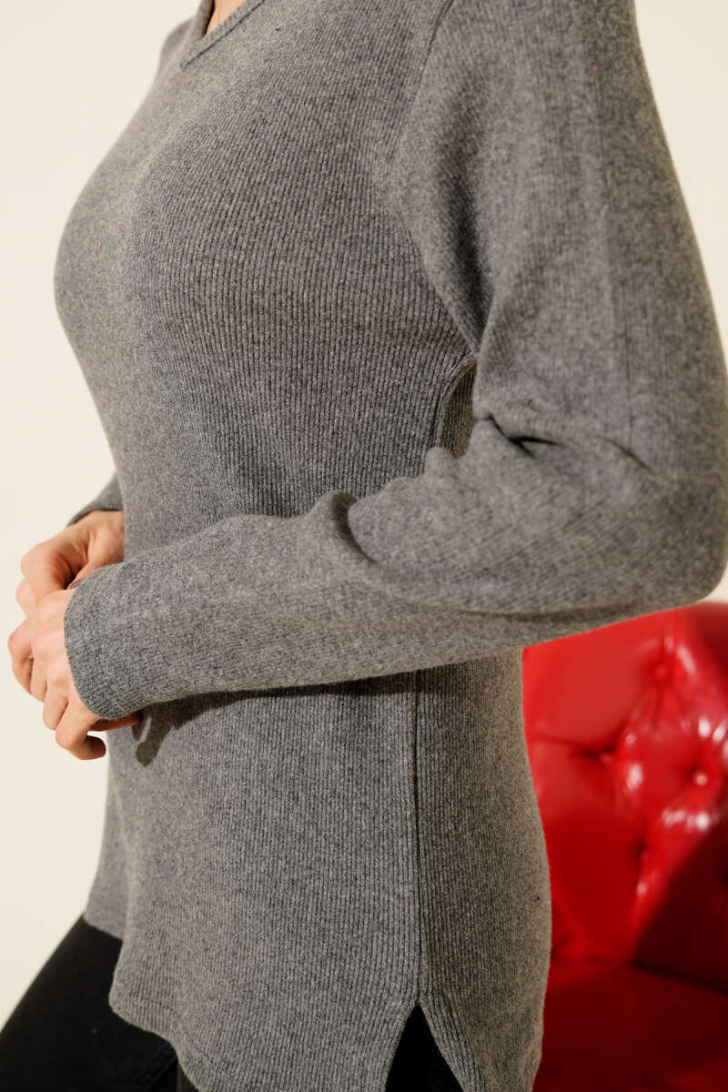 Armalı Polar Atkılı Üç İplik Sweatshirt Saks