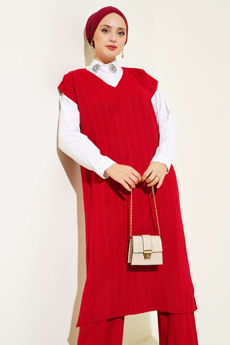 Balon Kol Balıkçı Yaka Triko İkili Takım Bordo