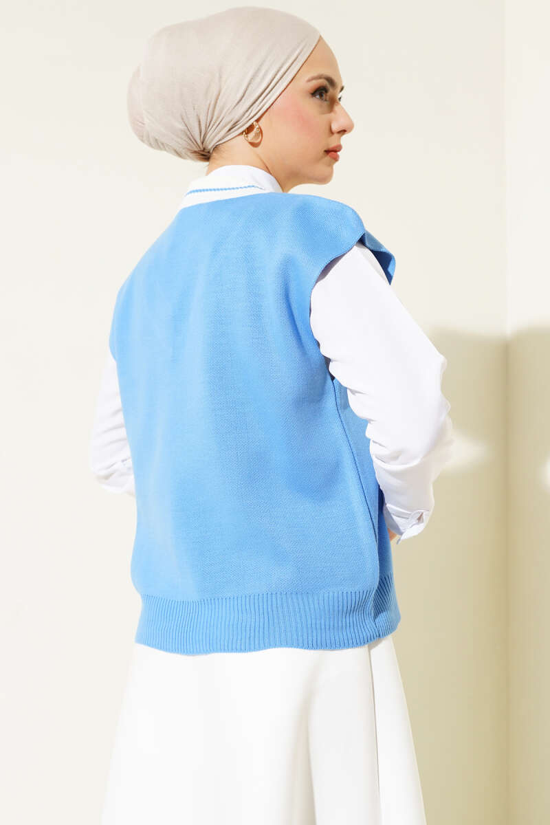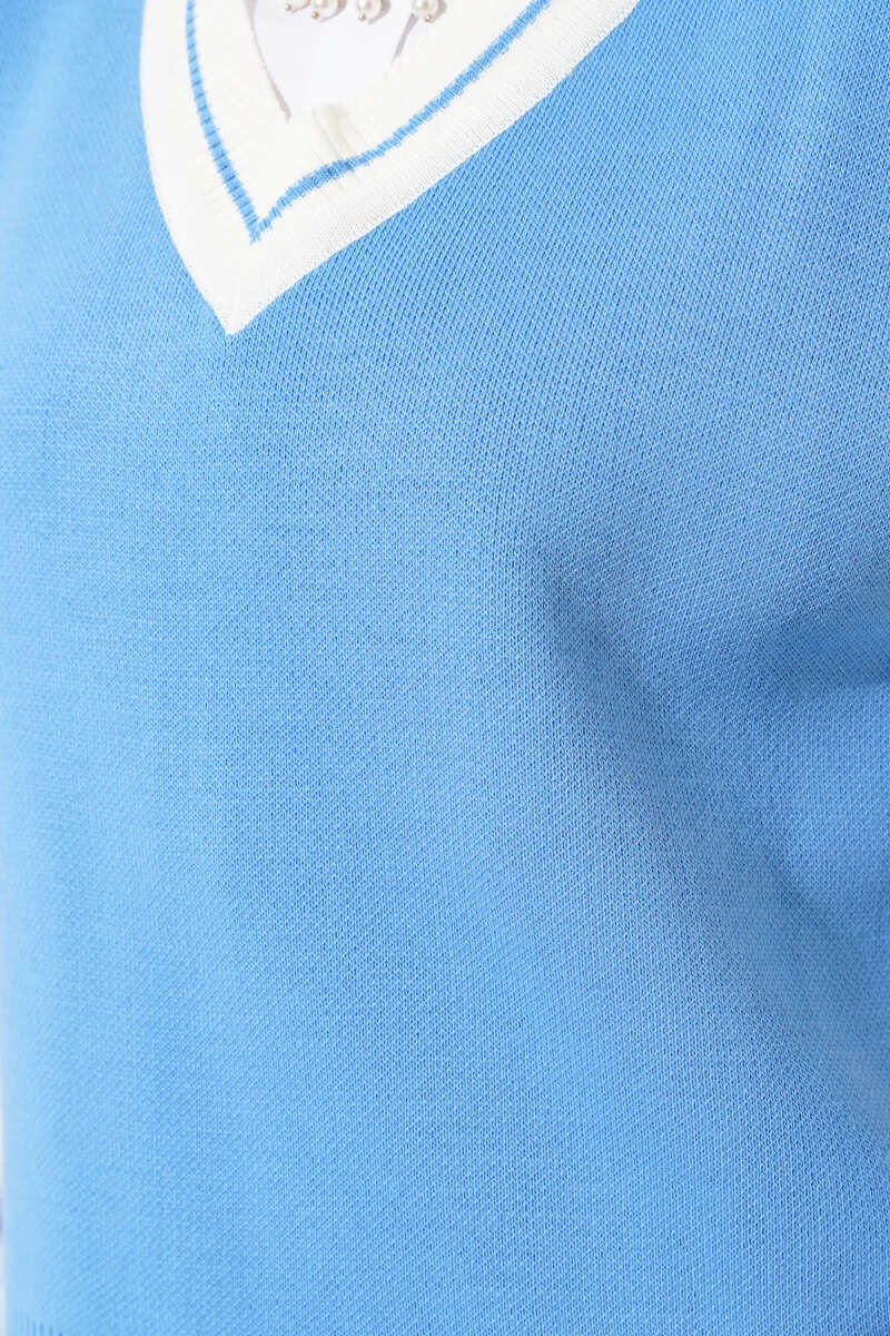 V Yaka Kısa Triko Süveter İndigo