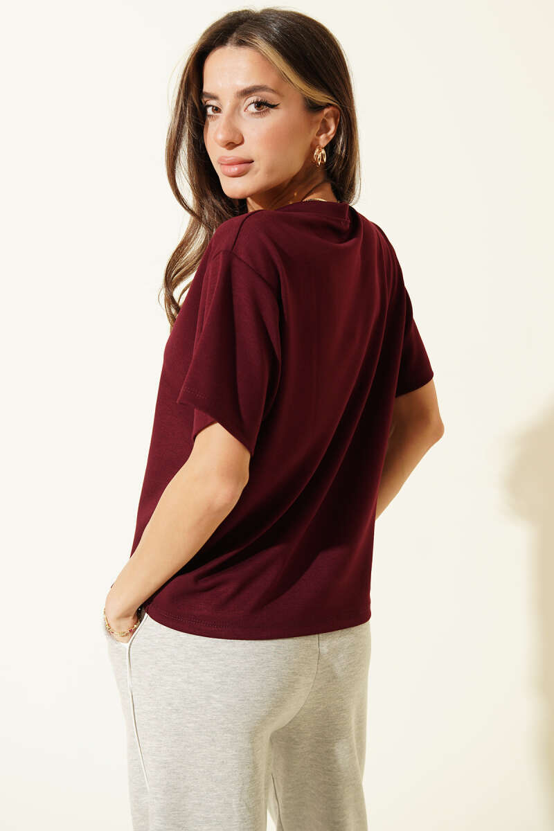 Simli Kısa Kol Loyşa İkili Takım Bordo