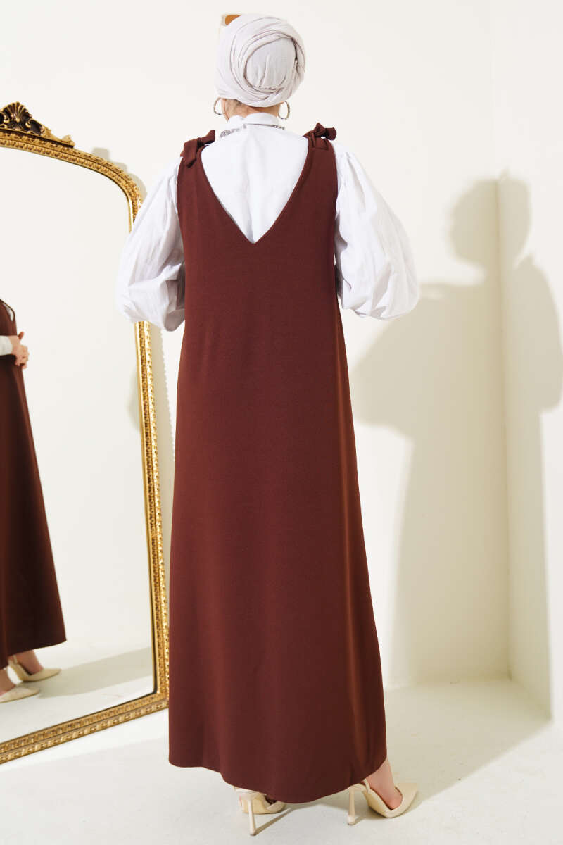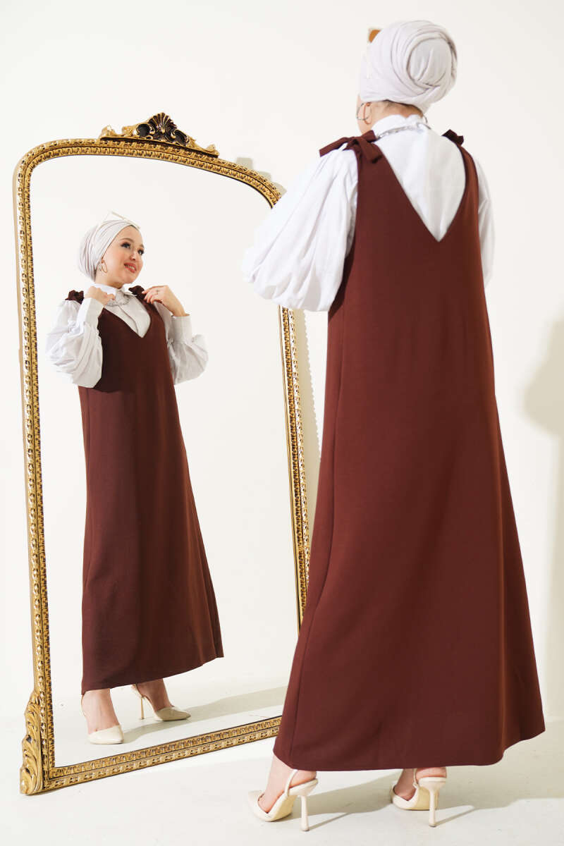 Bel Düğümlü Sandy Elbise Kestane