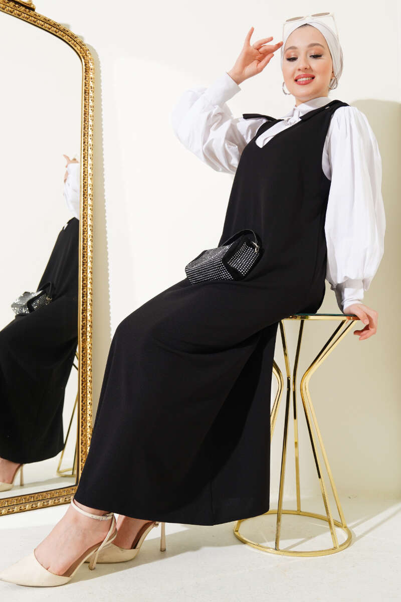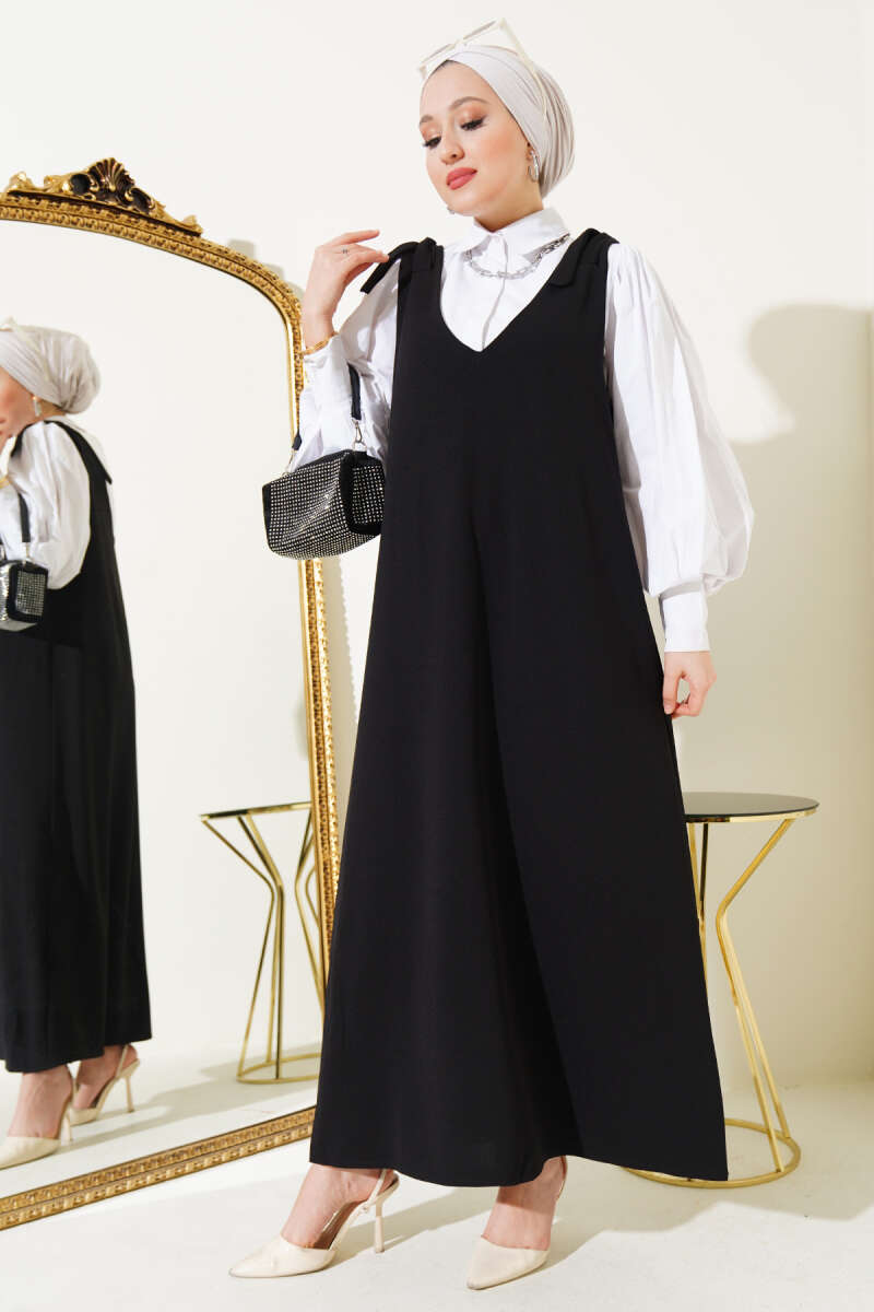 Bol Paça Salaş Kırçıllı Siyah Keten Pantolon