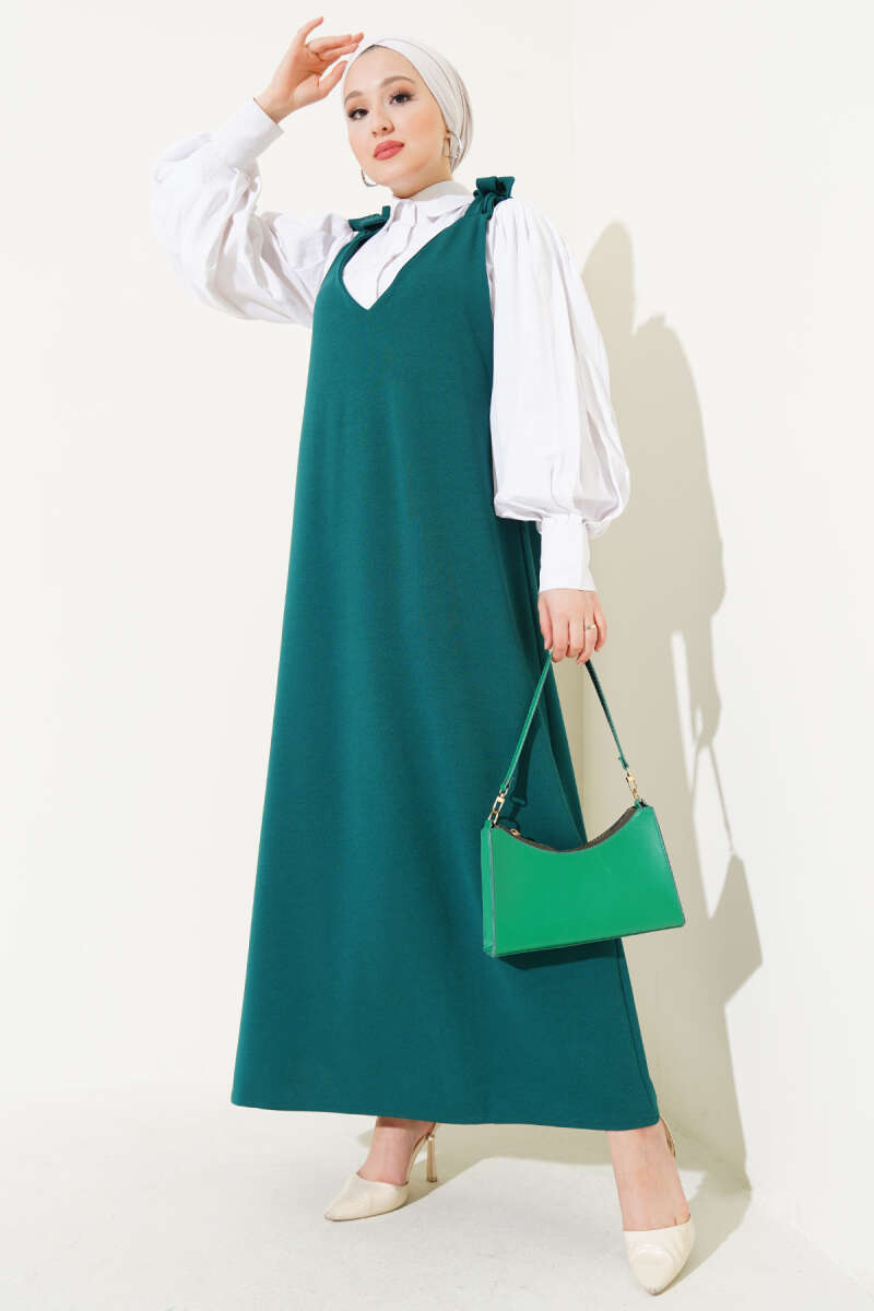 Duble Kol İp Kuşaklı Loyşa Elbise İndigo